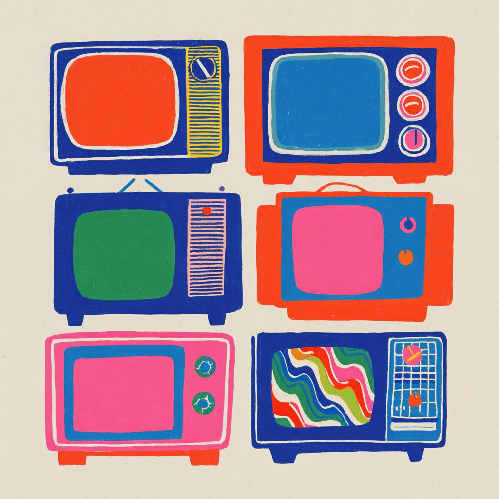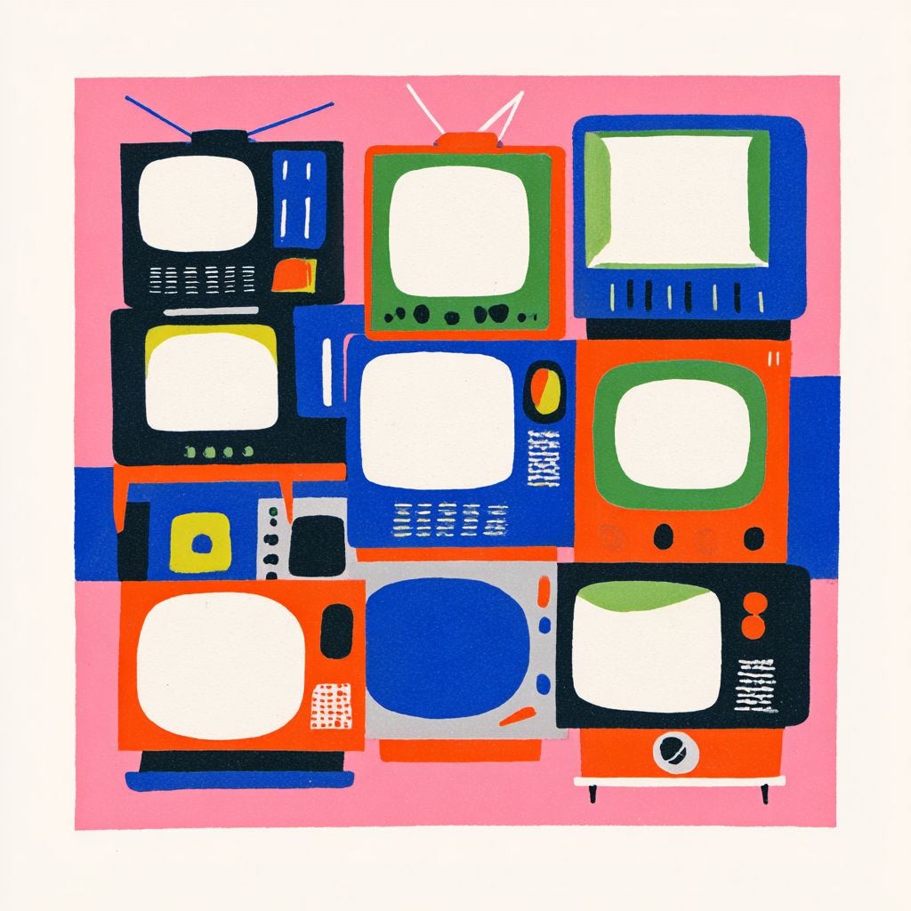 vector illustration of 6 televisions arranged in a grid. --profile 6fuzi9y 287s5ym --stylize 50 --v 7.0