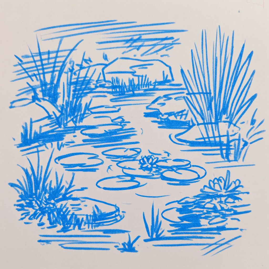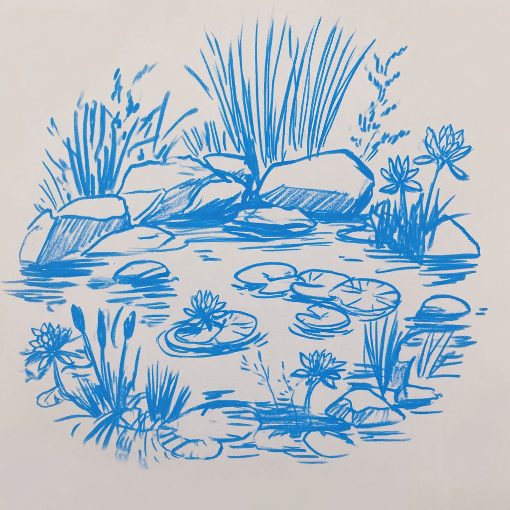 a tranquil lily pond --sref 1396559561 --ar 1:1 --v 7.0