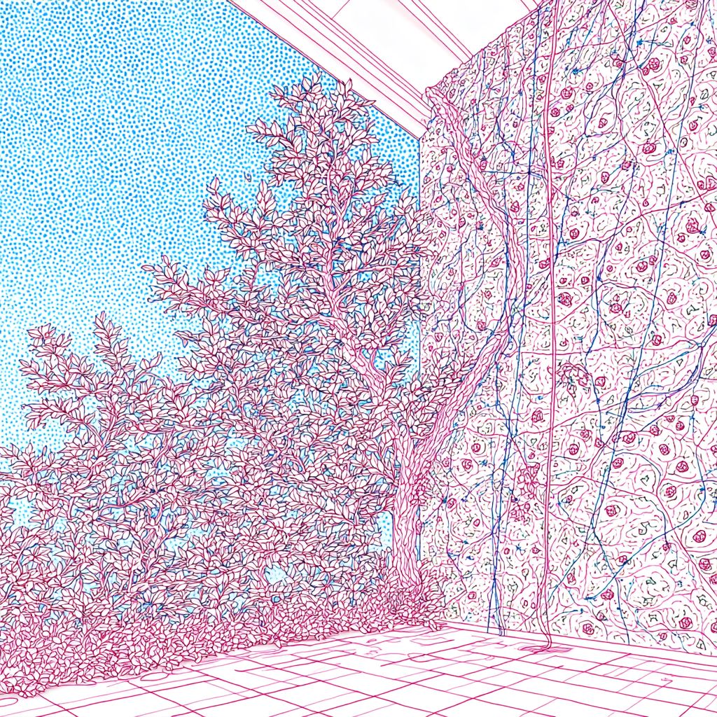 a wild ivy climbing wall --sref 1934274705 --ar 1:1 --v 7.0
