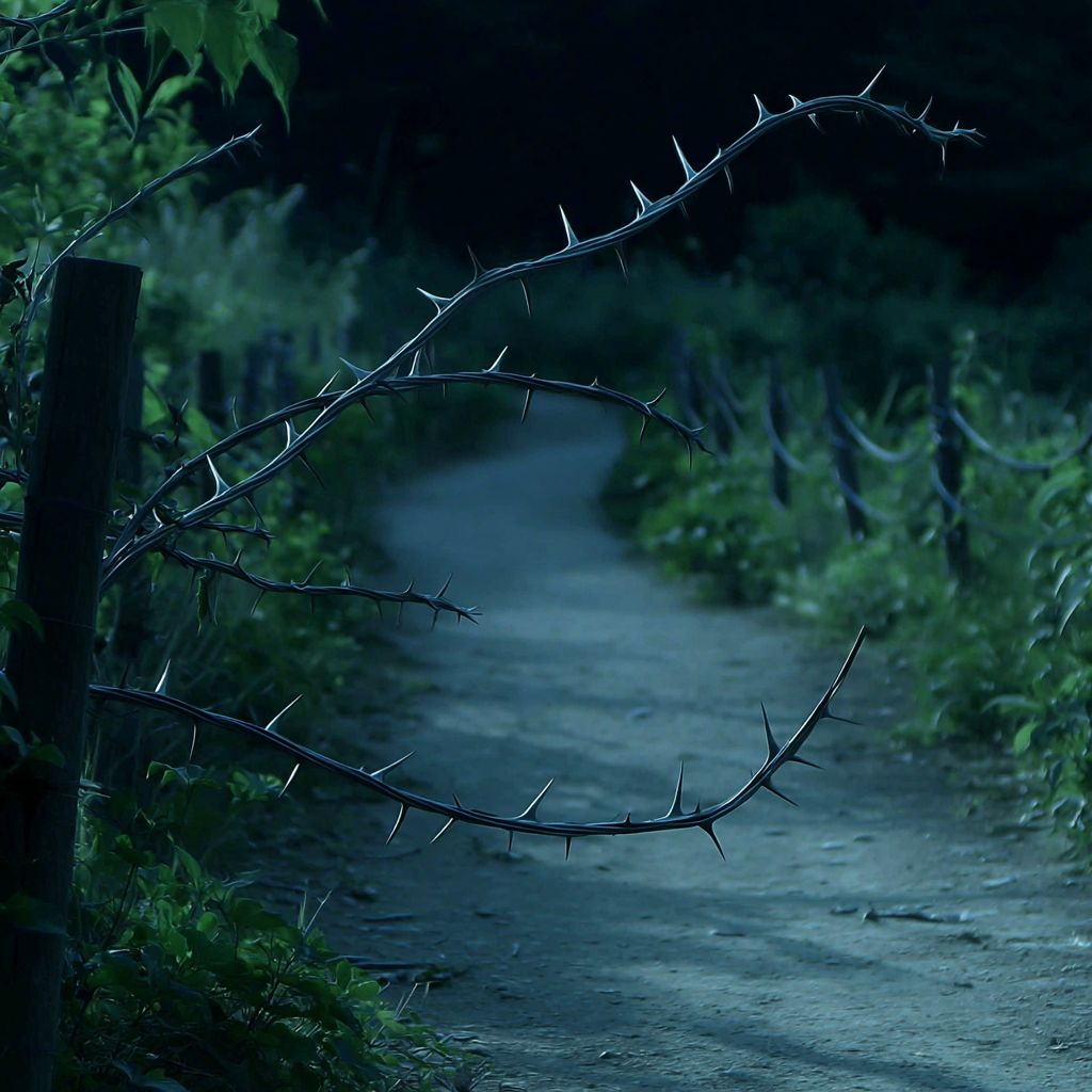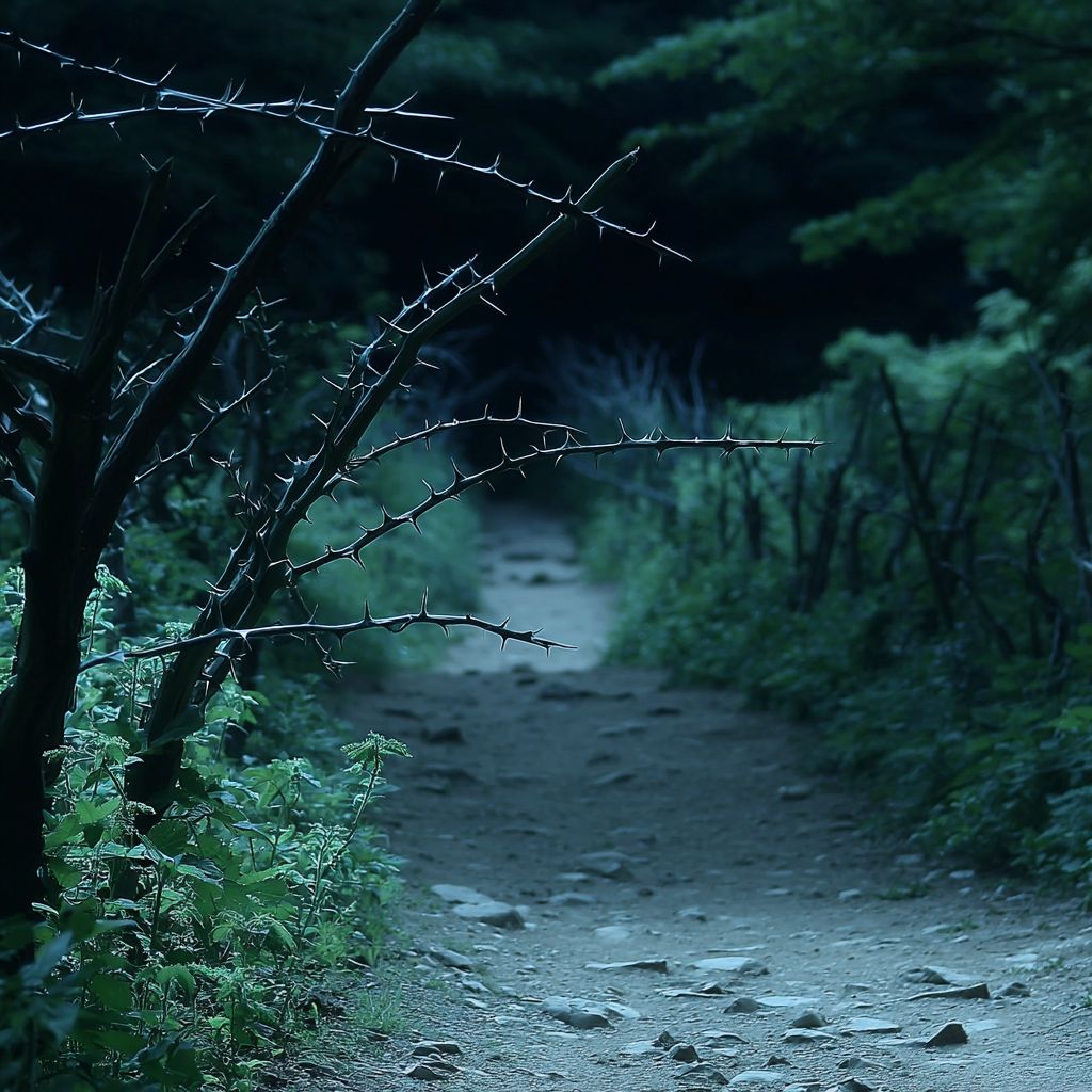 a thorny bramble path --sref 328304358 --ar 1:1 --v 7.0