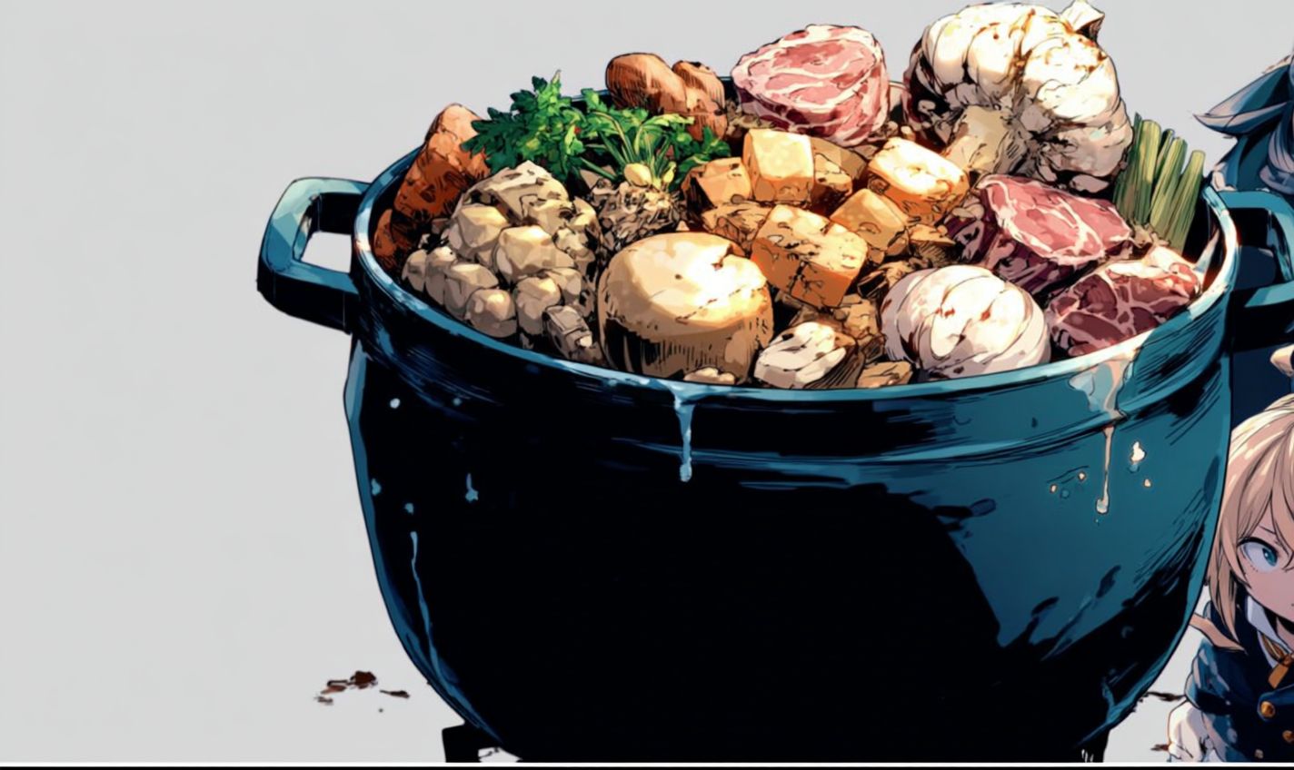 a hearty stew pot --sref 2086738975 --ar 5:3 --v 7.0