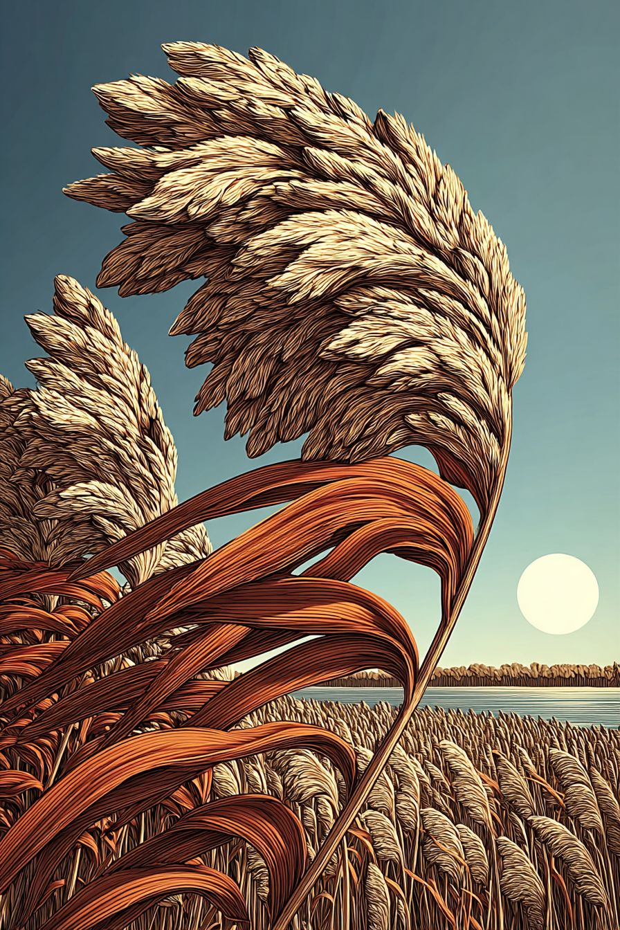 a graceful reed sway --sref 1720548982 --ar 2:3 --v 7.0