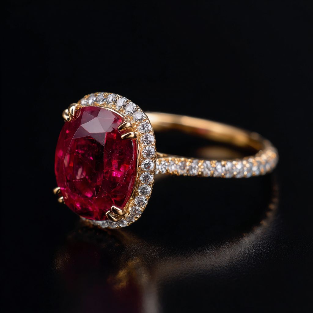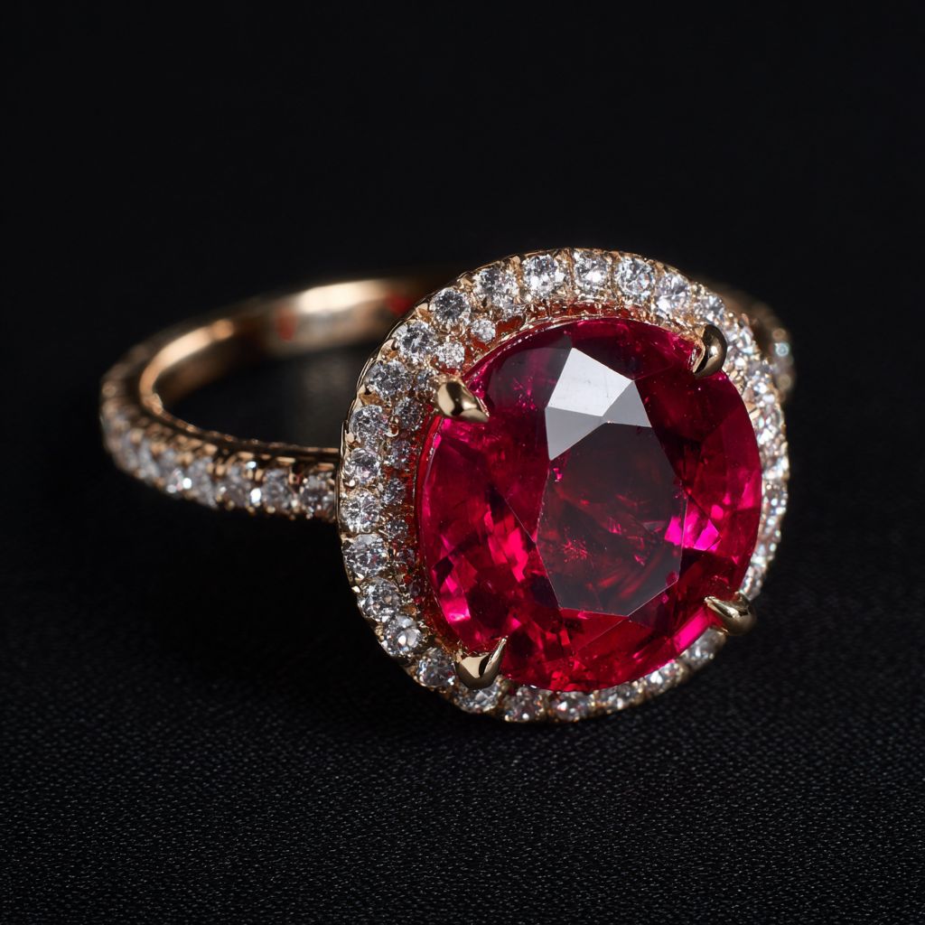 一枚10克拉红宝石女士戒指,18K金,钻石光环,微镶钻石带
