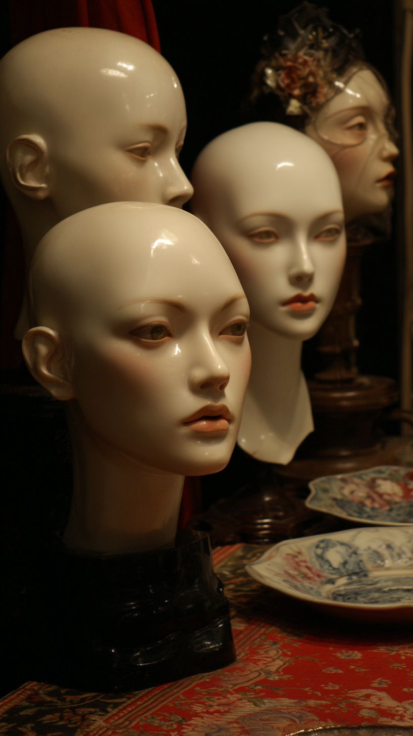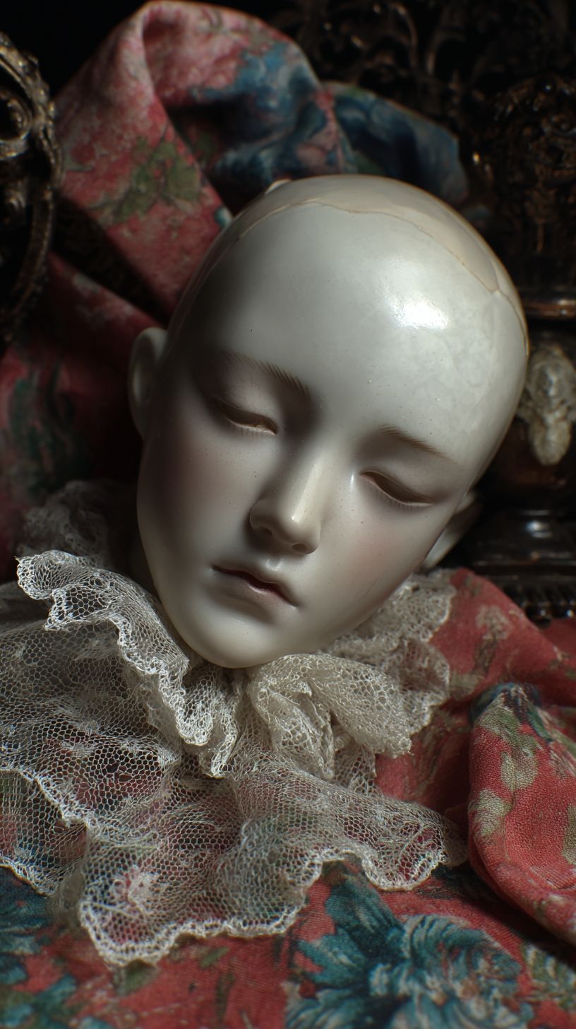 porcelain doll heads --chaos 10 --ar 9:16 --raw --profile dw3qg78 --v 7.0 --s 50
