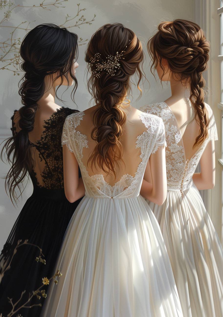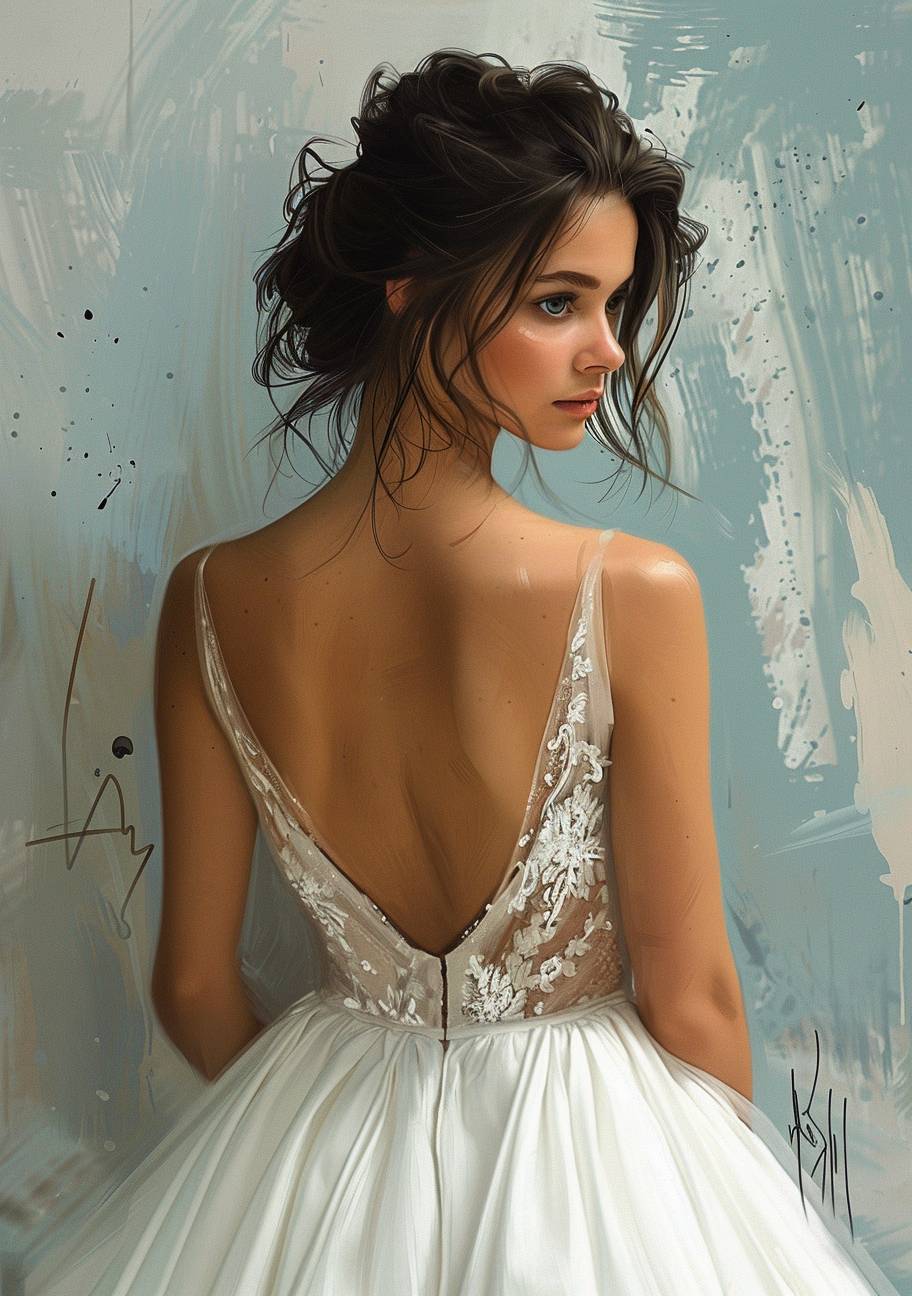 Una ilustración detallada y realista de páginas de Mujeres con vestidos de novia, imágenes individuales con diferentes ángulos, incluidas vistas laterales y de perfil, adecuadas para usar como páginas de revistas. El diseño debe estar bien definido con líneas negras claras, adecuadas para una página de revista de alta calidad. Asegúrese de que el fondo esté limpio y blanco, con amplio espacio en blanco. Evita los degradados de color o los grises, centrándote únicamente en las líneas blancas y negras que definen al animal. Fondo blanco, pose realista e individual. Resolución de 8k, tinta limpia y líneas nítidas. Las dimensiones deben coincidir con un tamaño de papel A4 (210 x 297 mm). --ar 70:99 --stylize 750 --v 6.0