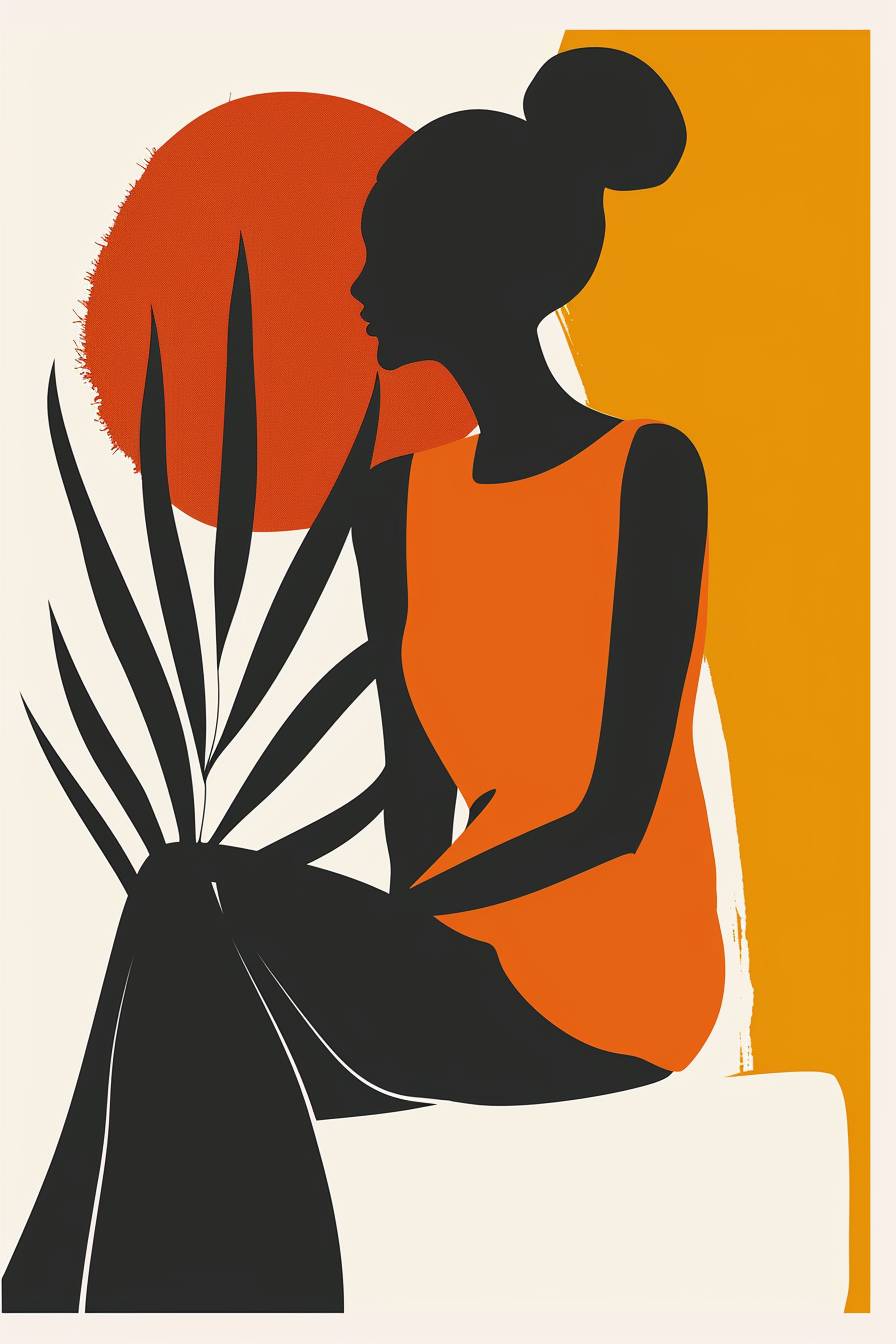 一位女性模特的视觉作品,灵感来源于亨利·马蒂斯的标志性风格。作品的构图应融入马蒂斯对大胆形状和高对比度的热爱,但要加入现代、简约的元素。也许可以专注于一个有机形状,采用鲜艳的颜色,置于鲜明的背景之上。形式的简单性结合突出使用的白色,应唤起马蒂斯的作品,同时提供一种新颖的简约解读。