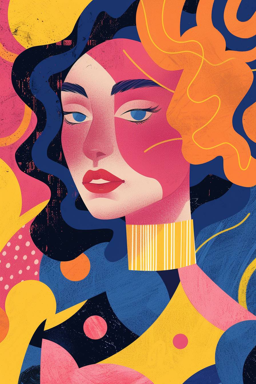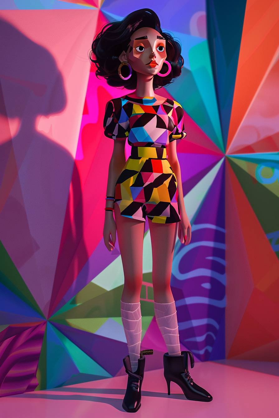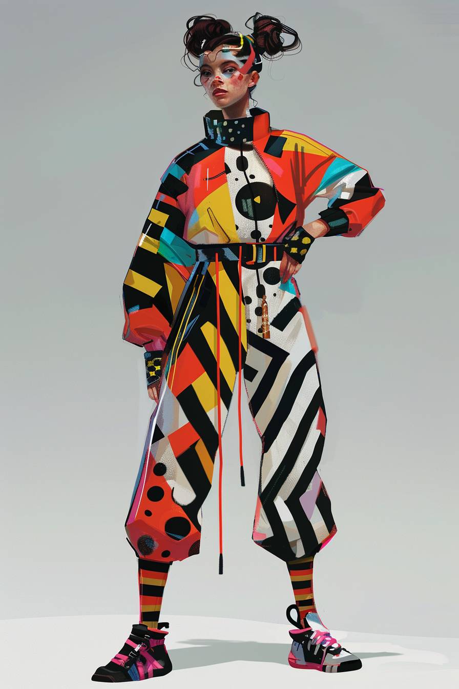 in style of Camille Walala, character concept design, half body --ar 2:3 --v 6.0