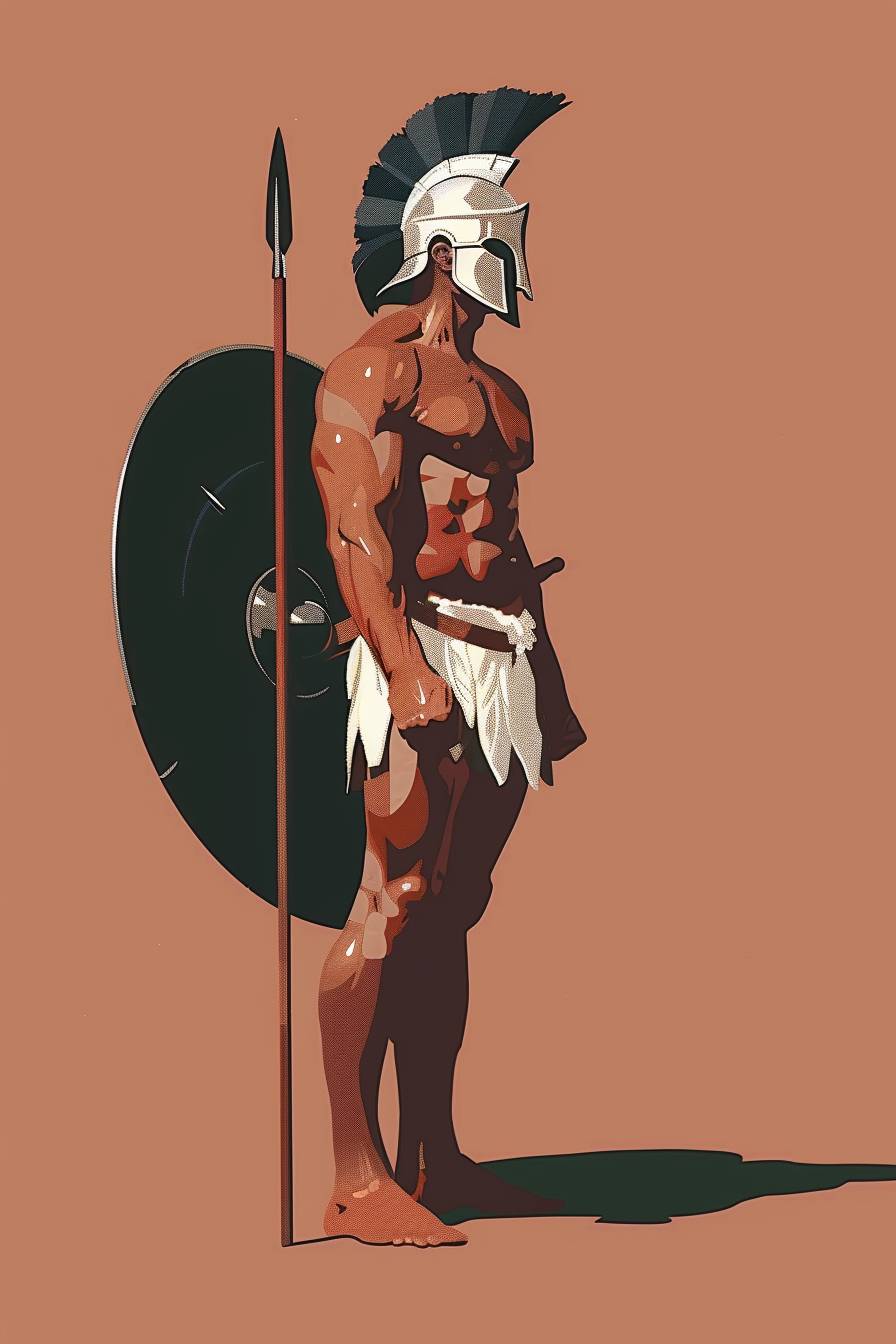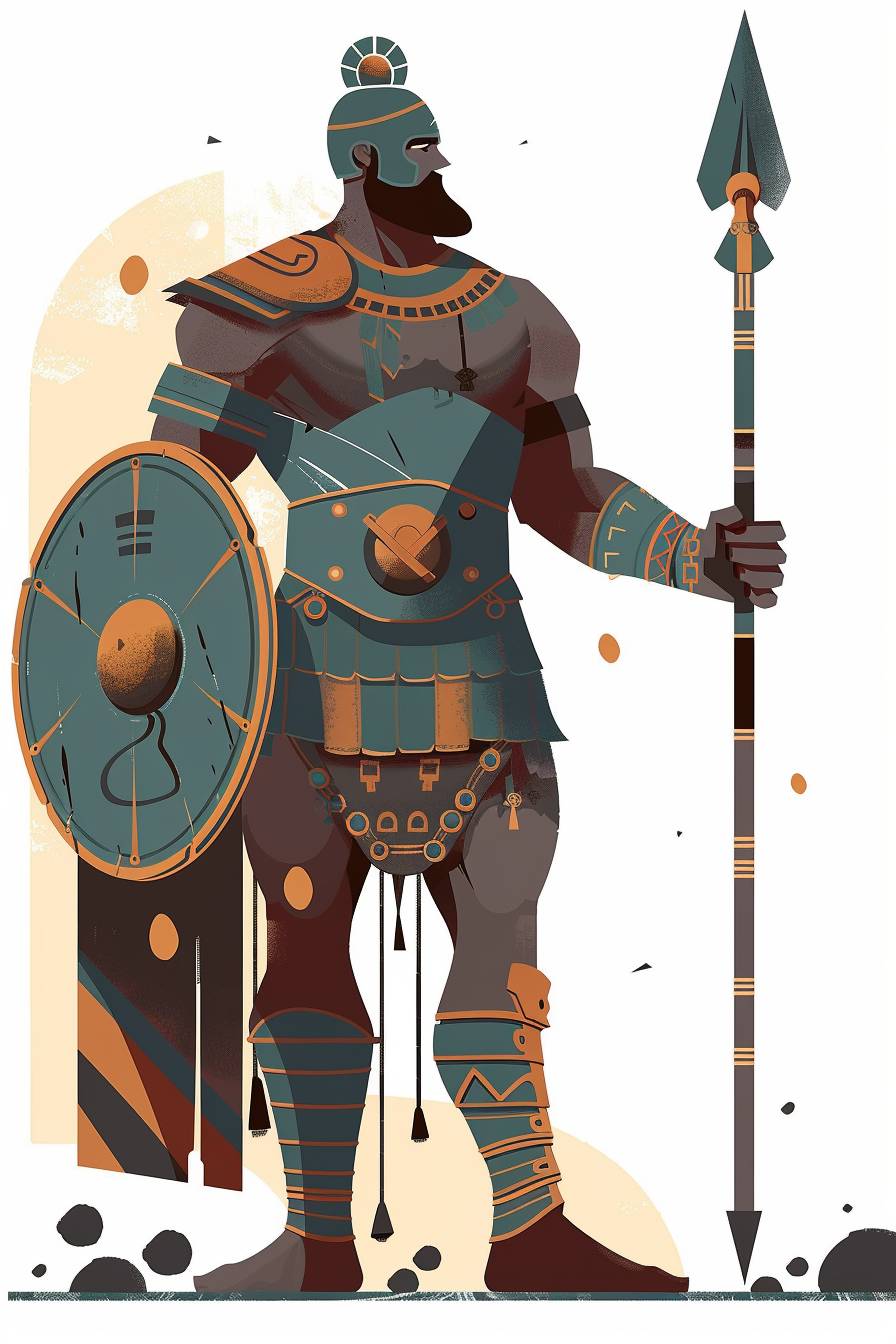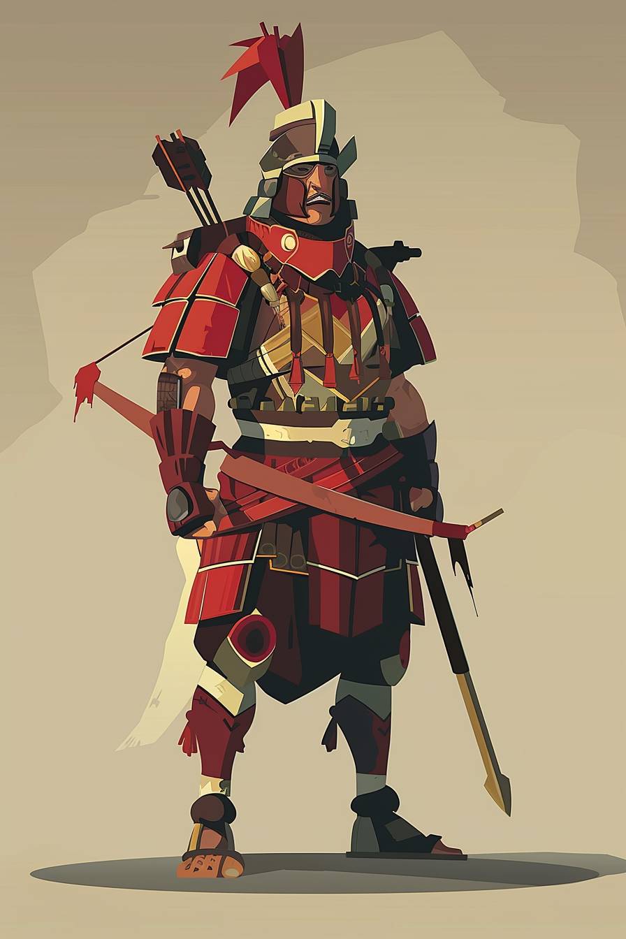 in style of Harold Edgerton, warrior character, full body, flat color illustration --ar 2:3 --v 6.0