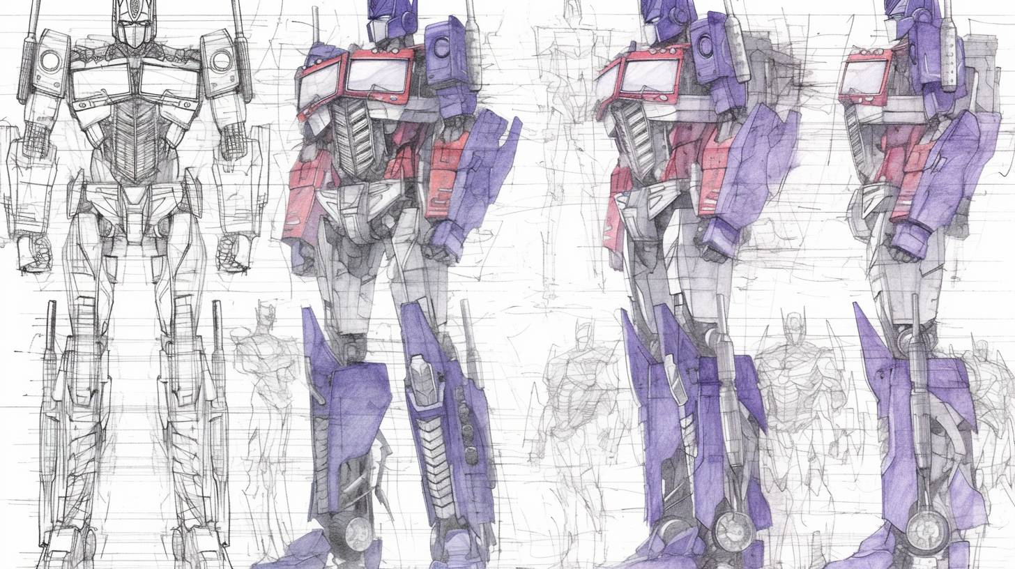 Optimus Prime character sheet design --ar 16:9 --style raw --sref 551927990 --stylize 1000 --niji 6