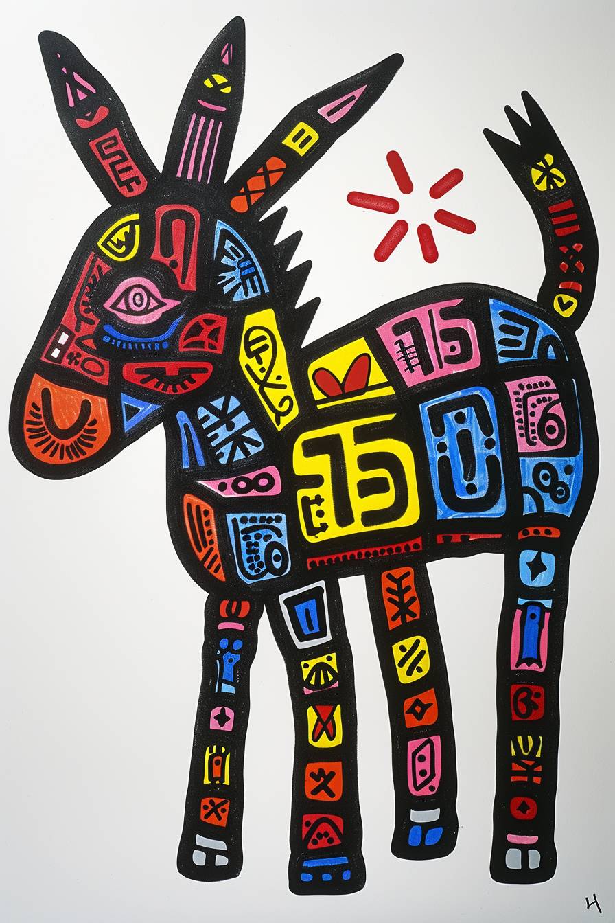 magic marker drawing of a donkey in the style of keith haring --ar 2:3 --stylize 250 --v 6.0