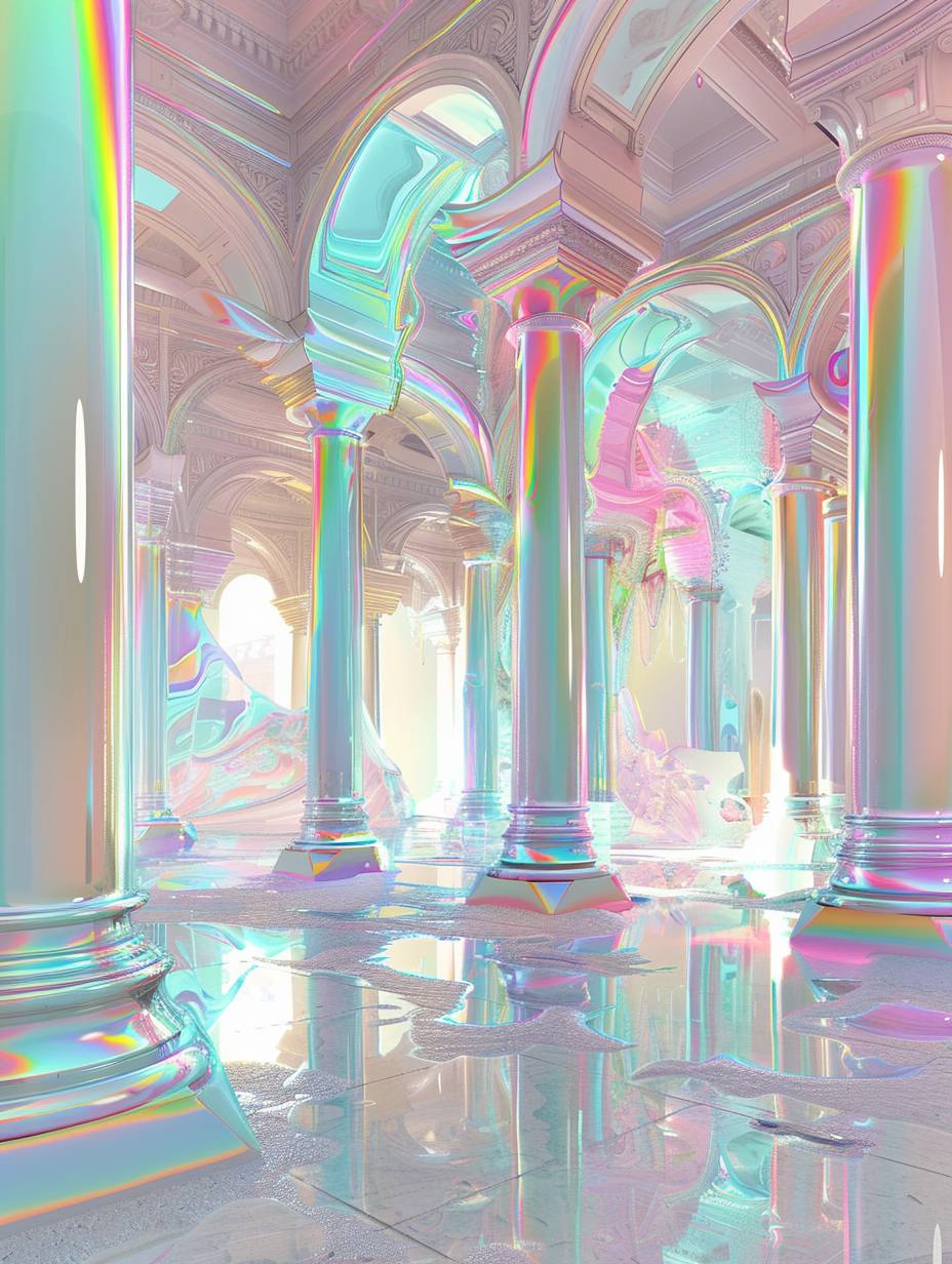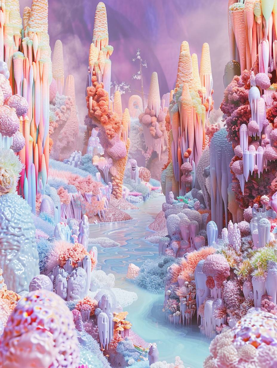 a supercalifragilisticexpiadelicious surreal dreamscape in pastel colour palette, its a database of recorded human experiences, known as 'simstim', which allows users to experience the sensory perceptions of others. --ar 3:4 --v 6.0 --style raw