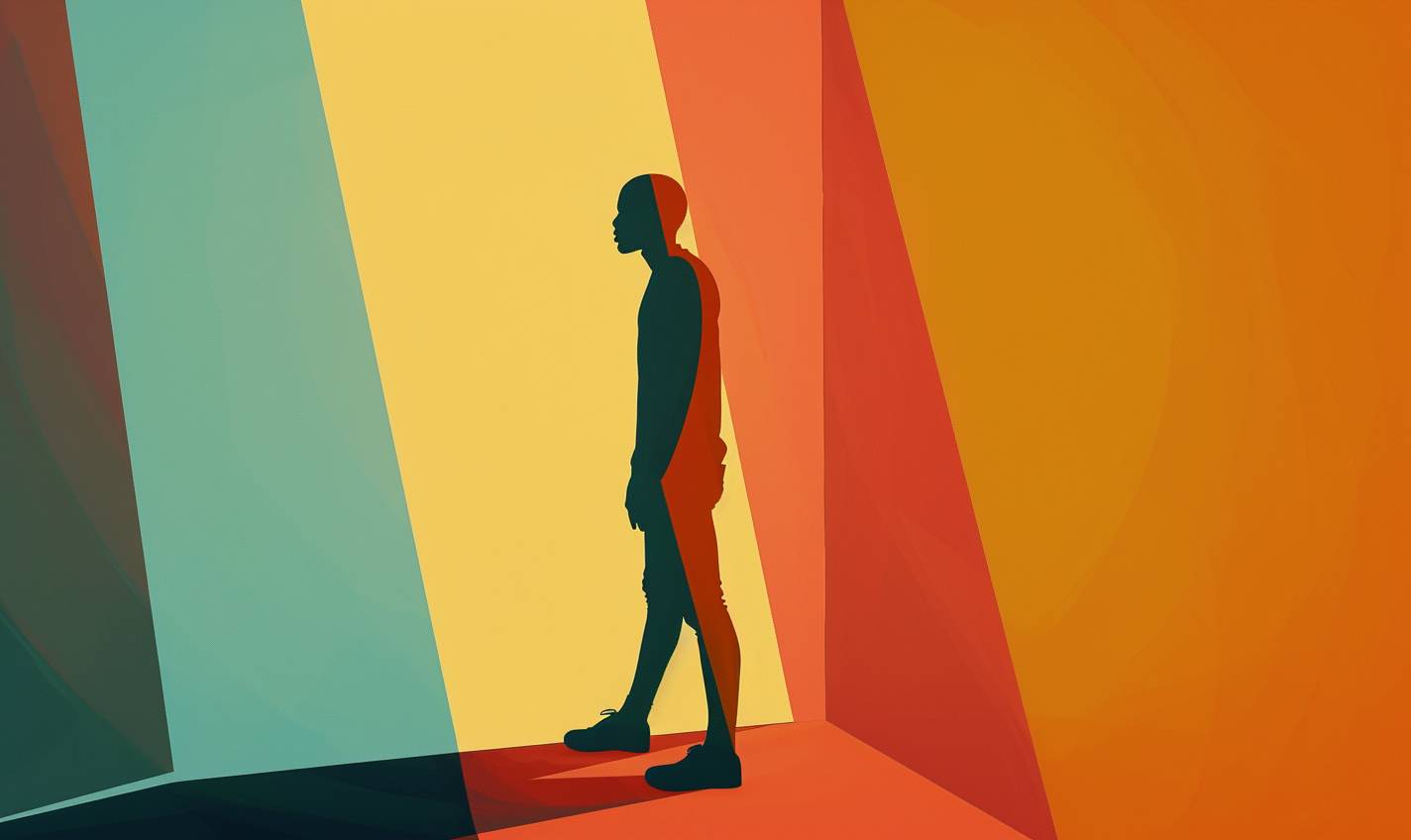 [SUBJECT], in the style of minimalist illustrator, reinterpreted human form, iconic album covers, [COLOR] and [COLOR], stop-motion animation, elongated forms, flat illustrations --ar 5:3 --v 6.0