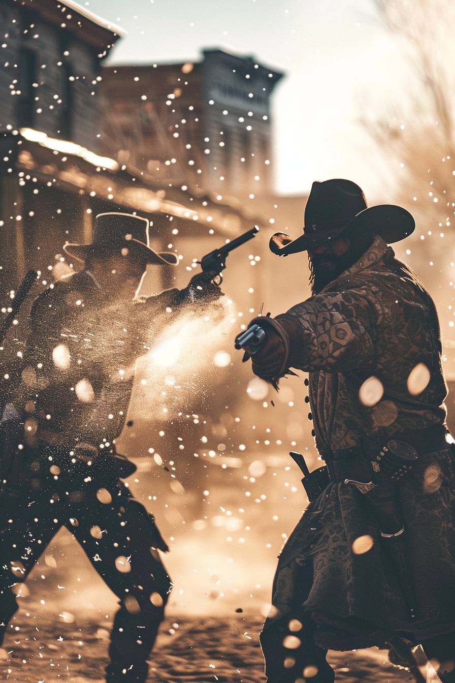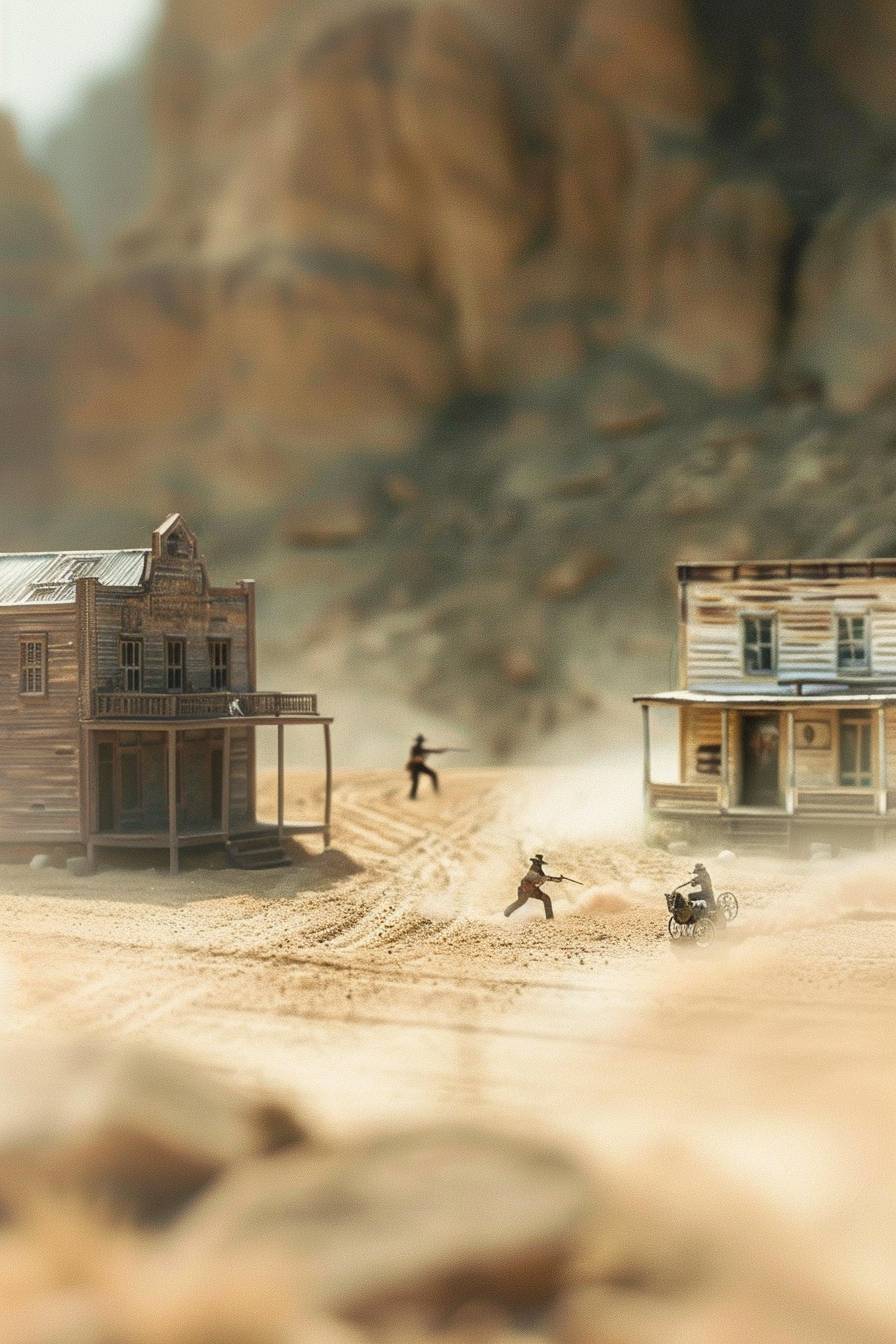 在一个尘土飞扬的沙漠小镇上的西部决斗风格,Miki Asai的风格。