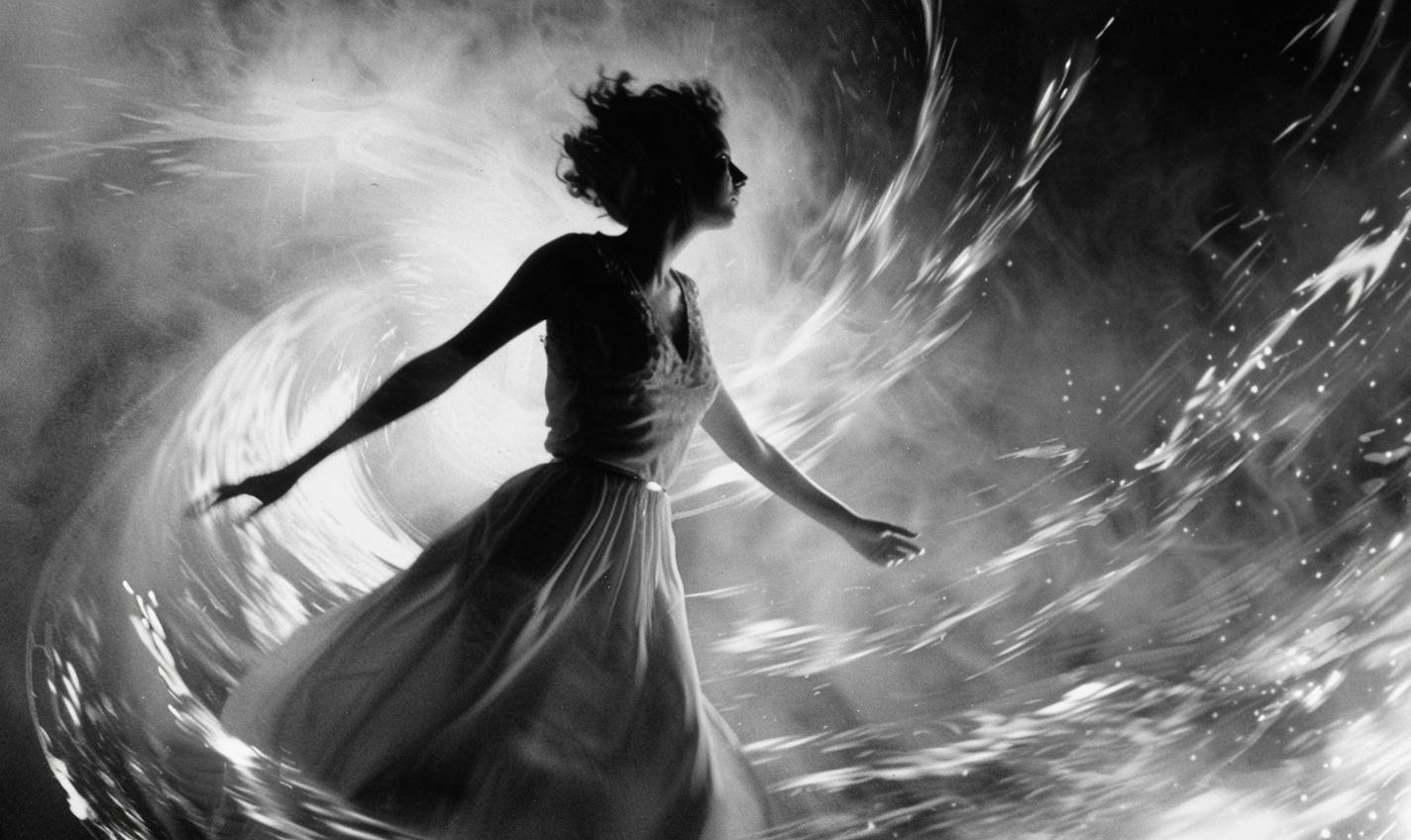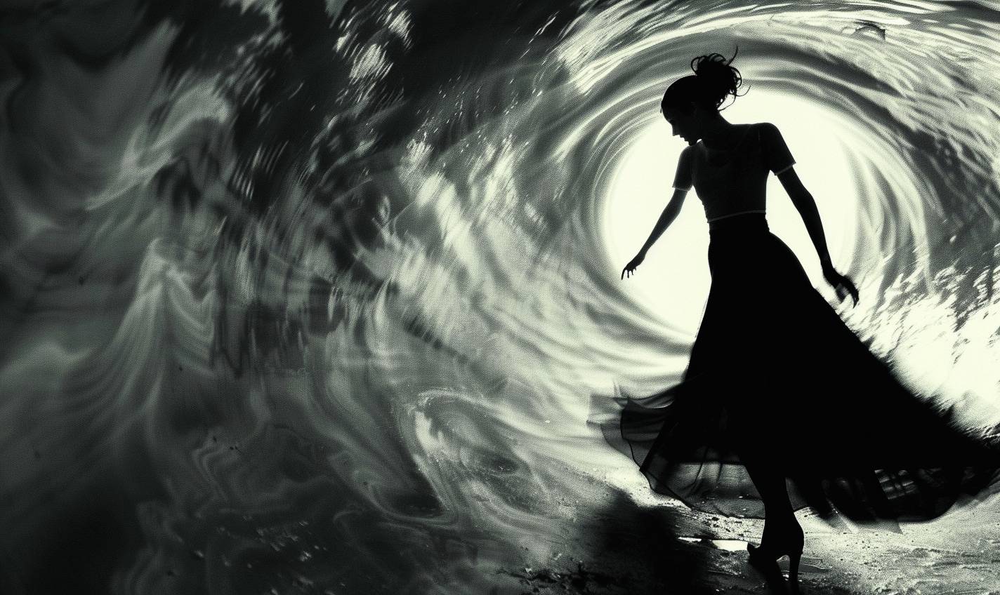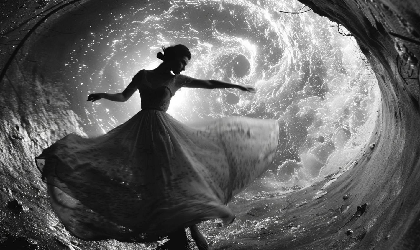 in style of Lillian Bassman,Cosmic journey through wormholes --ar 5:3 --v 6.0