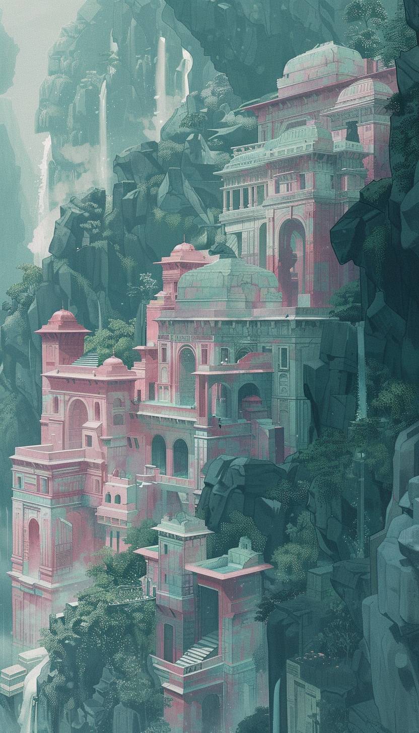 in style of Hsiao Ron Cheng,Enigmatic ruins of an ancient civilization --ar 4:7 --v 6.0