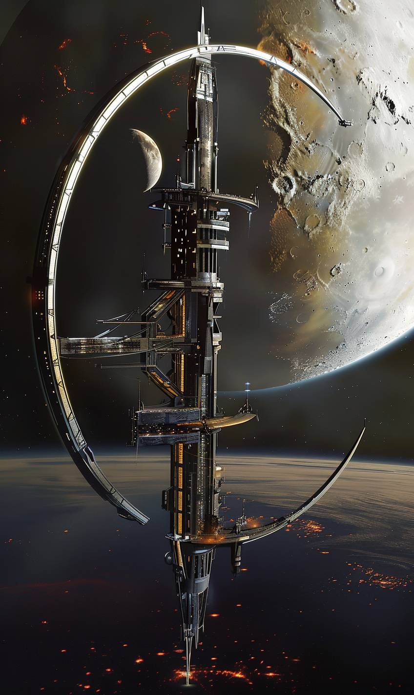 in style of Santiago Calatrava,Space station orbiting a distant moon --ar 3:5 --v 6.0