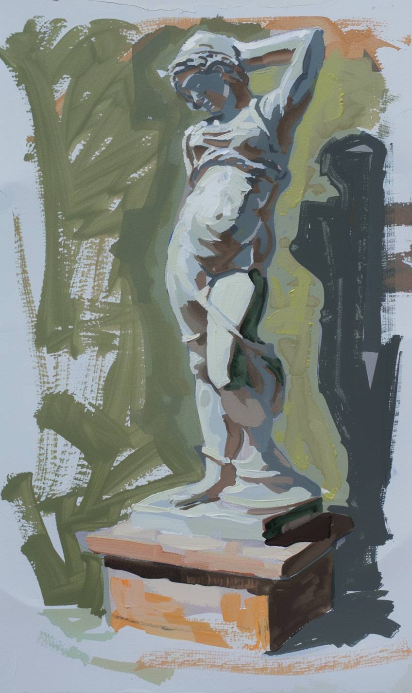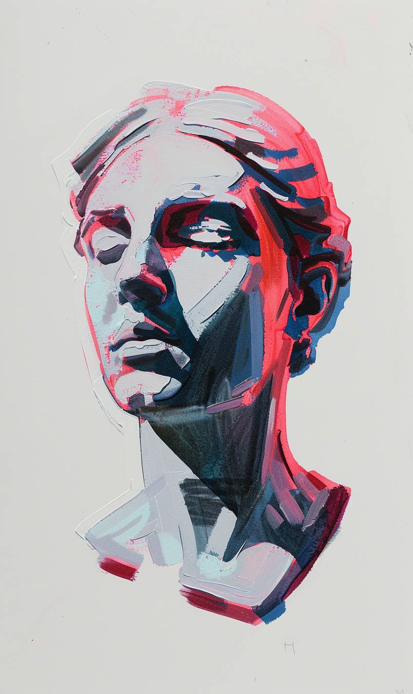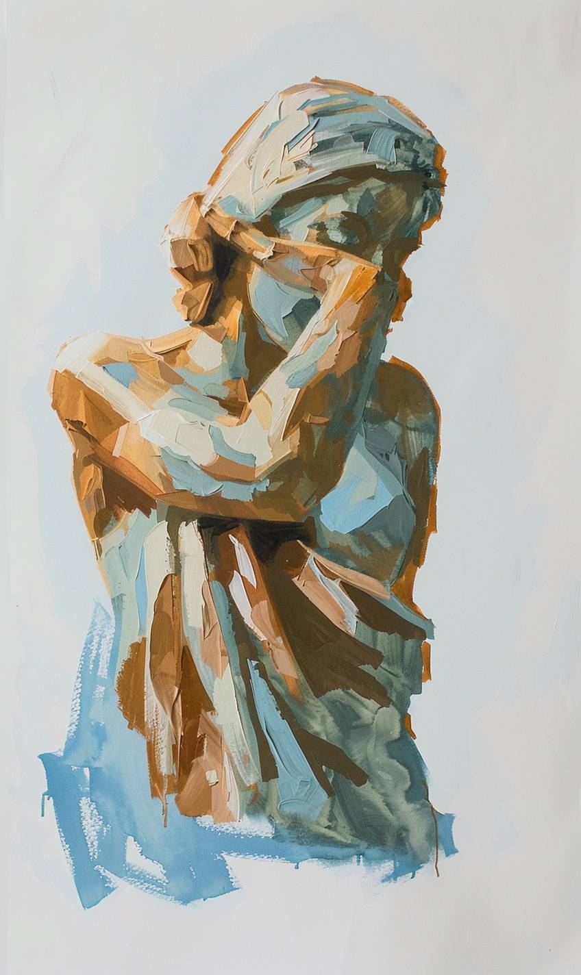 simple small minimalist cool fun 2 color gouache painting of a sculpture of a woman from antiquity --ar 3:5 --v 6.0