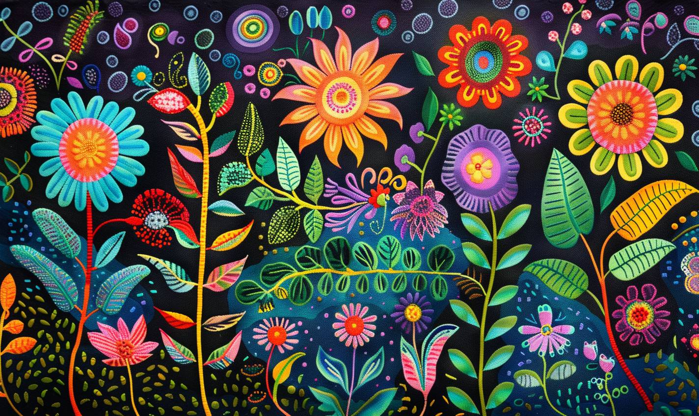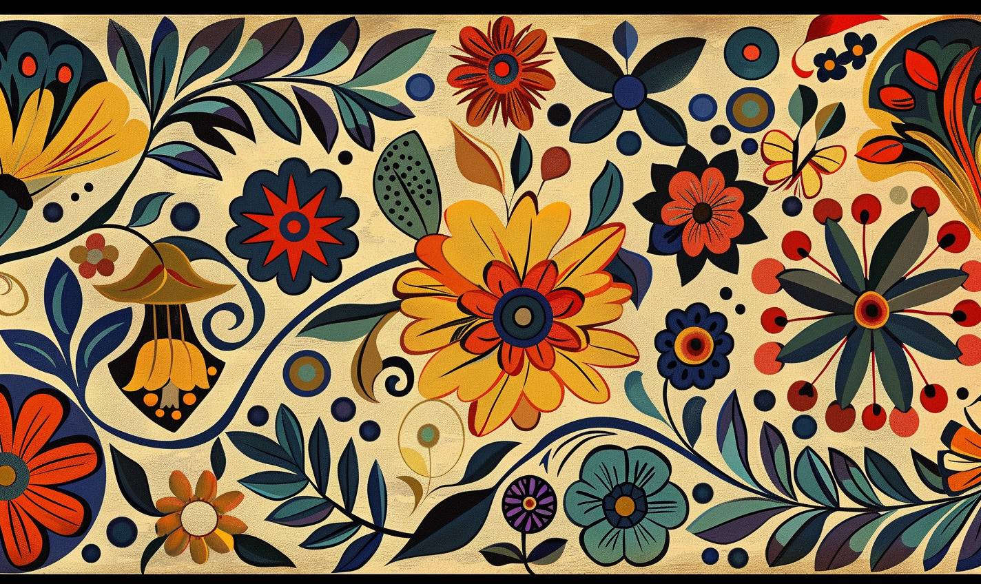 [SUBJECT] in Folk Art style, featuring [COLOR] and [COLOR] traditional motifs --ar 5:3 --v 6.0