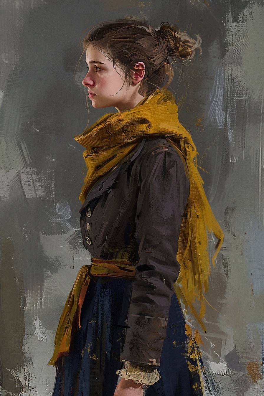 in style of Anna Ancher, character concept design, half body --ar 2:3 --v 6.0