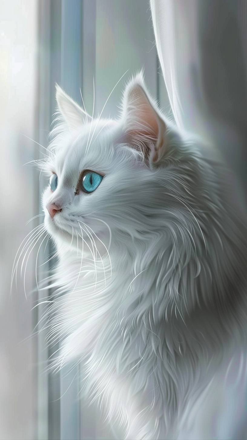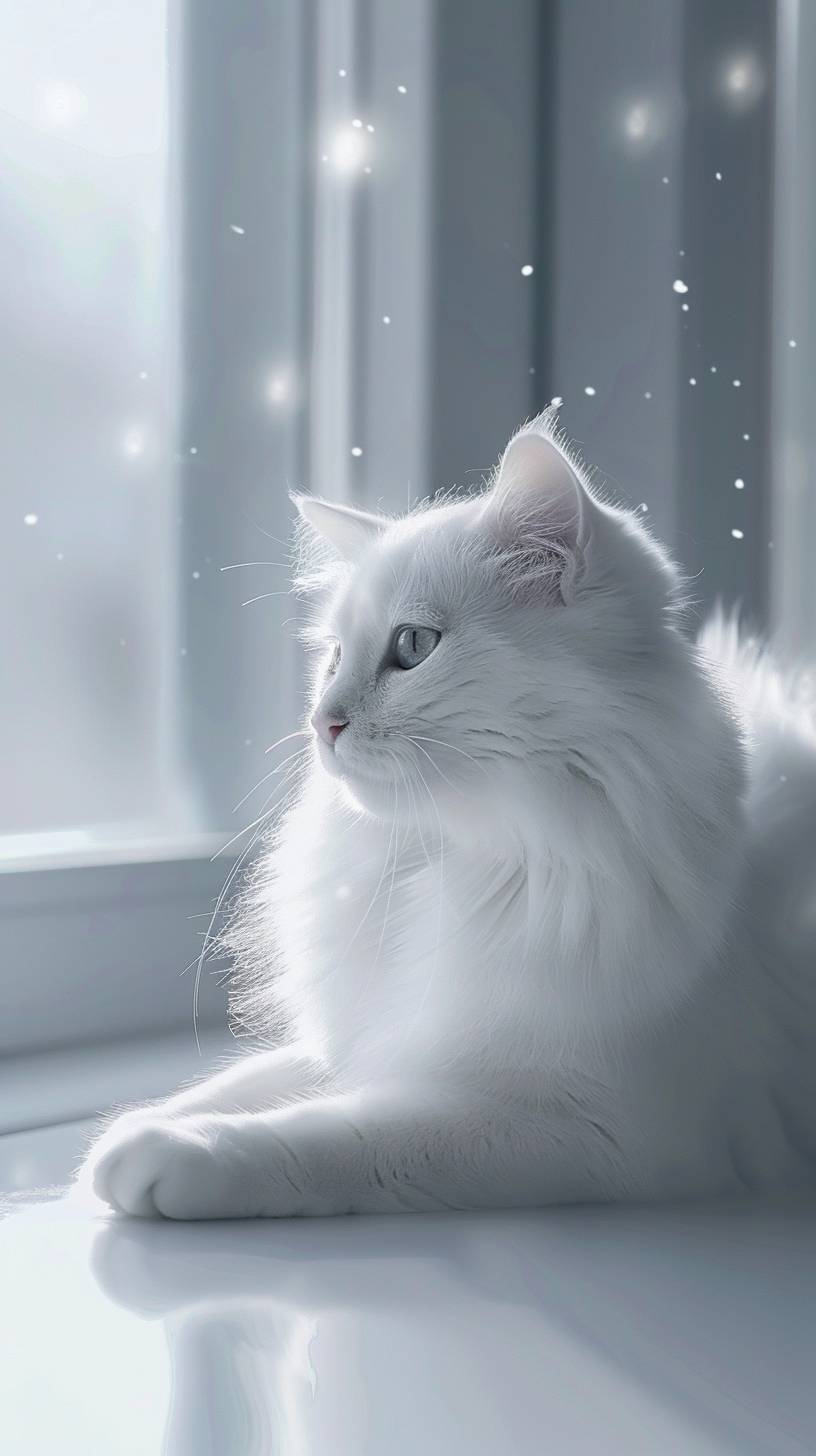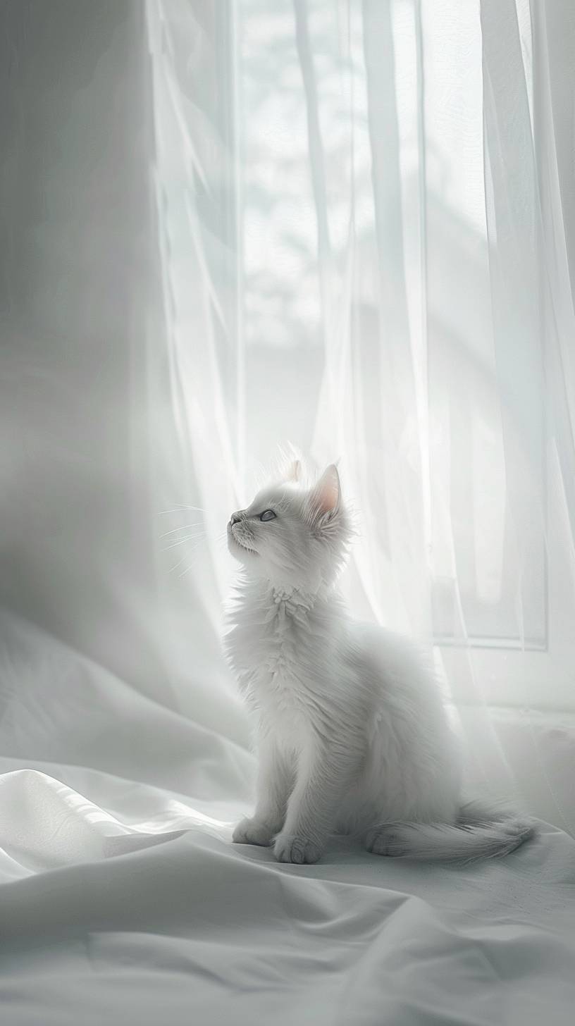 a cute white cat in a white room, photorealistic --ar 9:16 --v 6.0