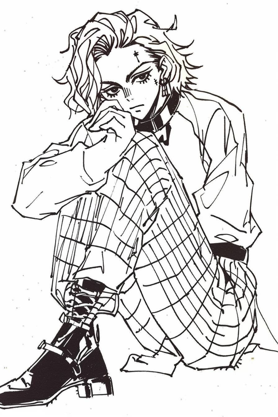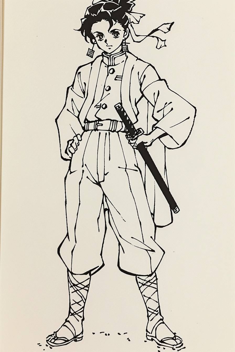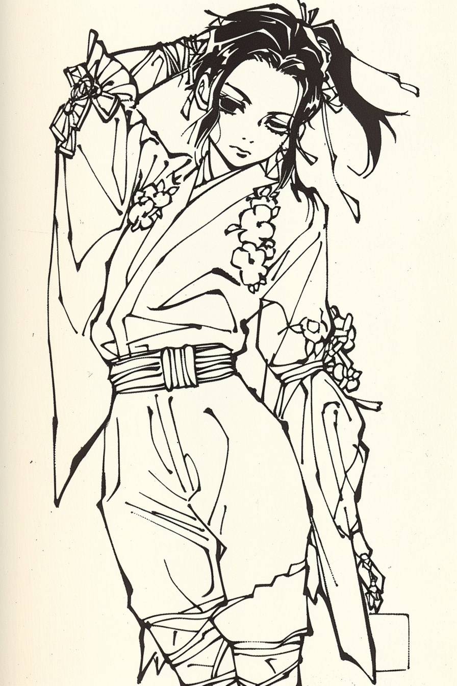 明石清十郎穿着不对称的腿部服饰,杂志页面,《鬼灭之刃》,动态姿势,特写