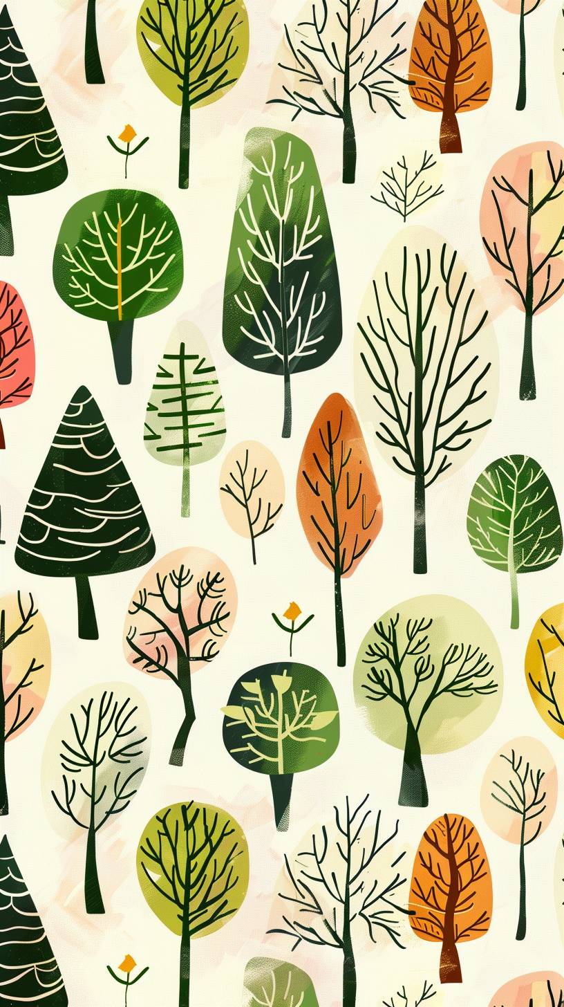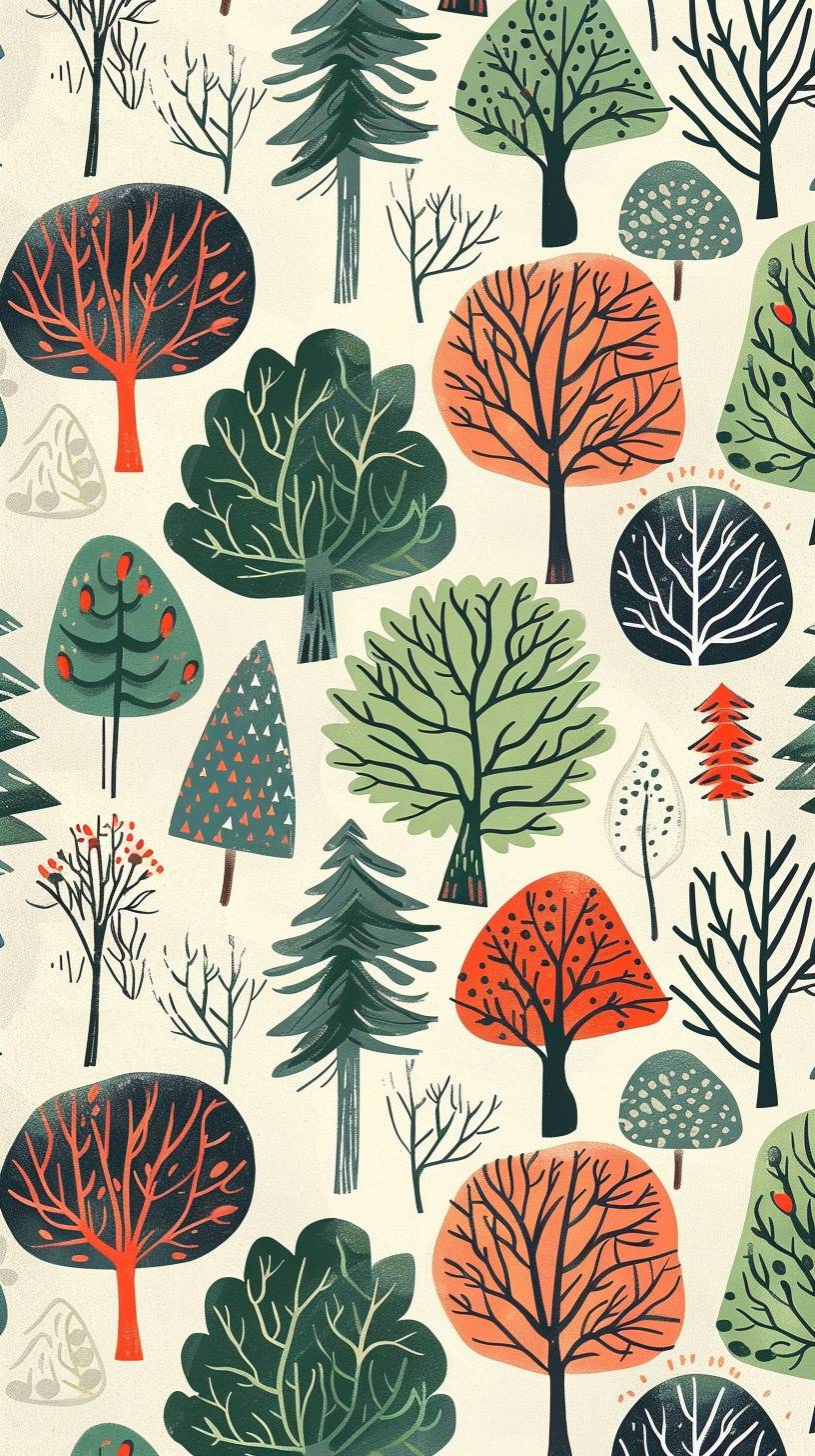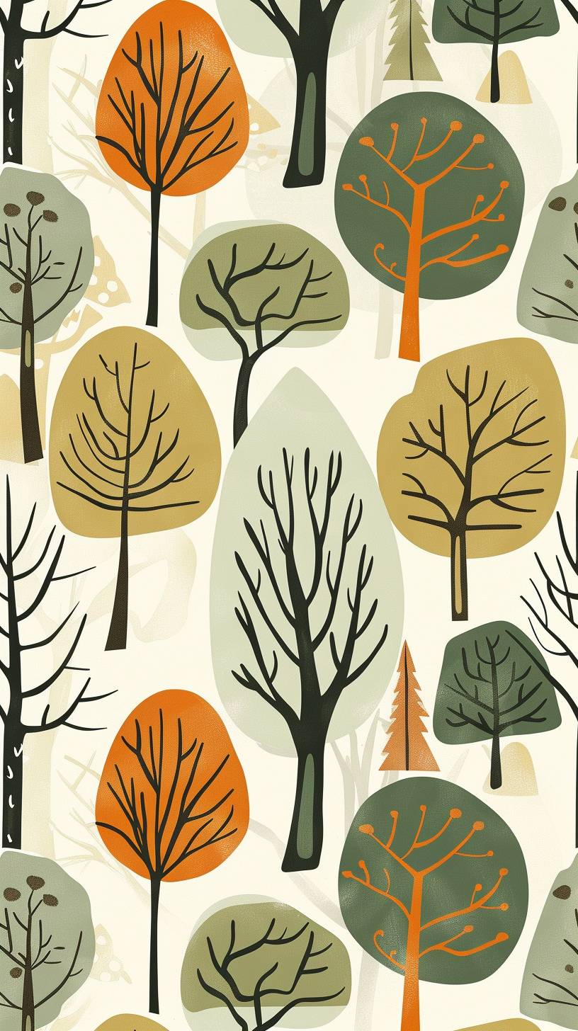 a mid century style illustration of British Trees pattern, --ar 9:16 --stylize 50 --v 6.0