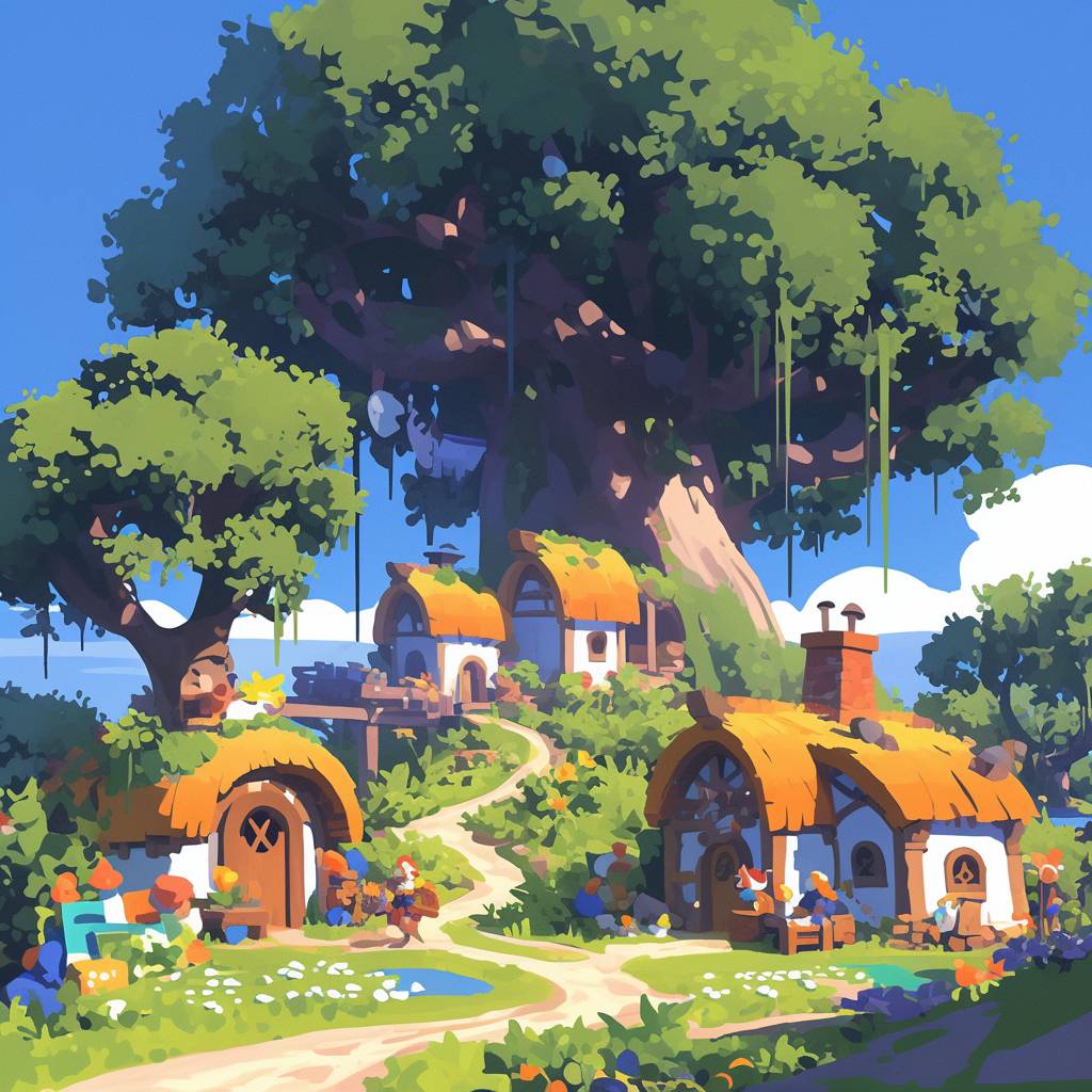 a village where there are houses --sref 906750234 --niji 6 --stylize 1000