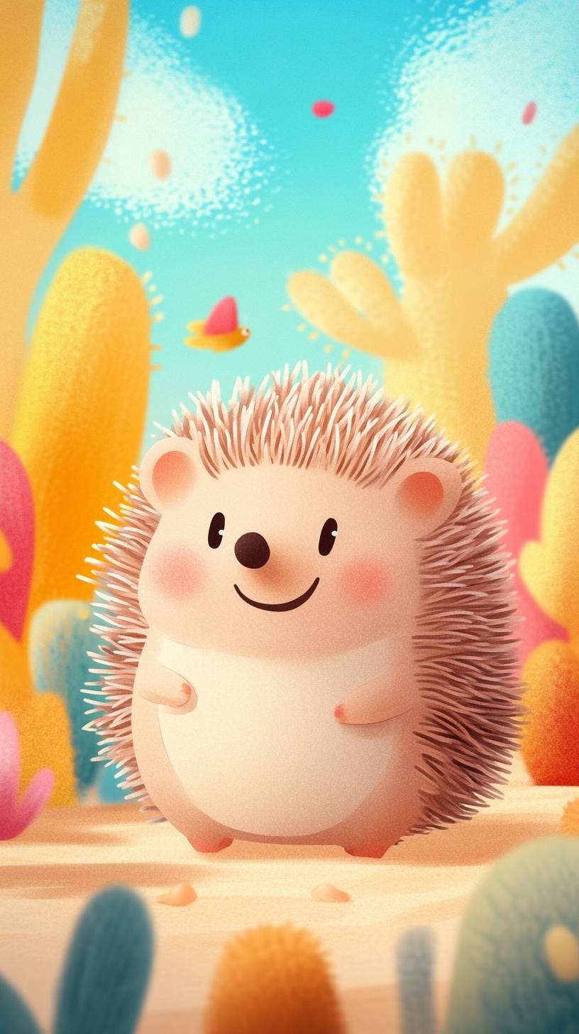 kids illustration , hedgehog in a playground, cartoon style, thicks lines, low detail, vivid color --ar 9:16 --personalize vou4f6i --stylize 250 --v 6.1