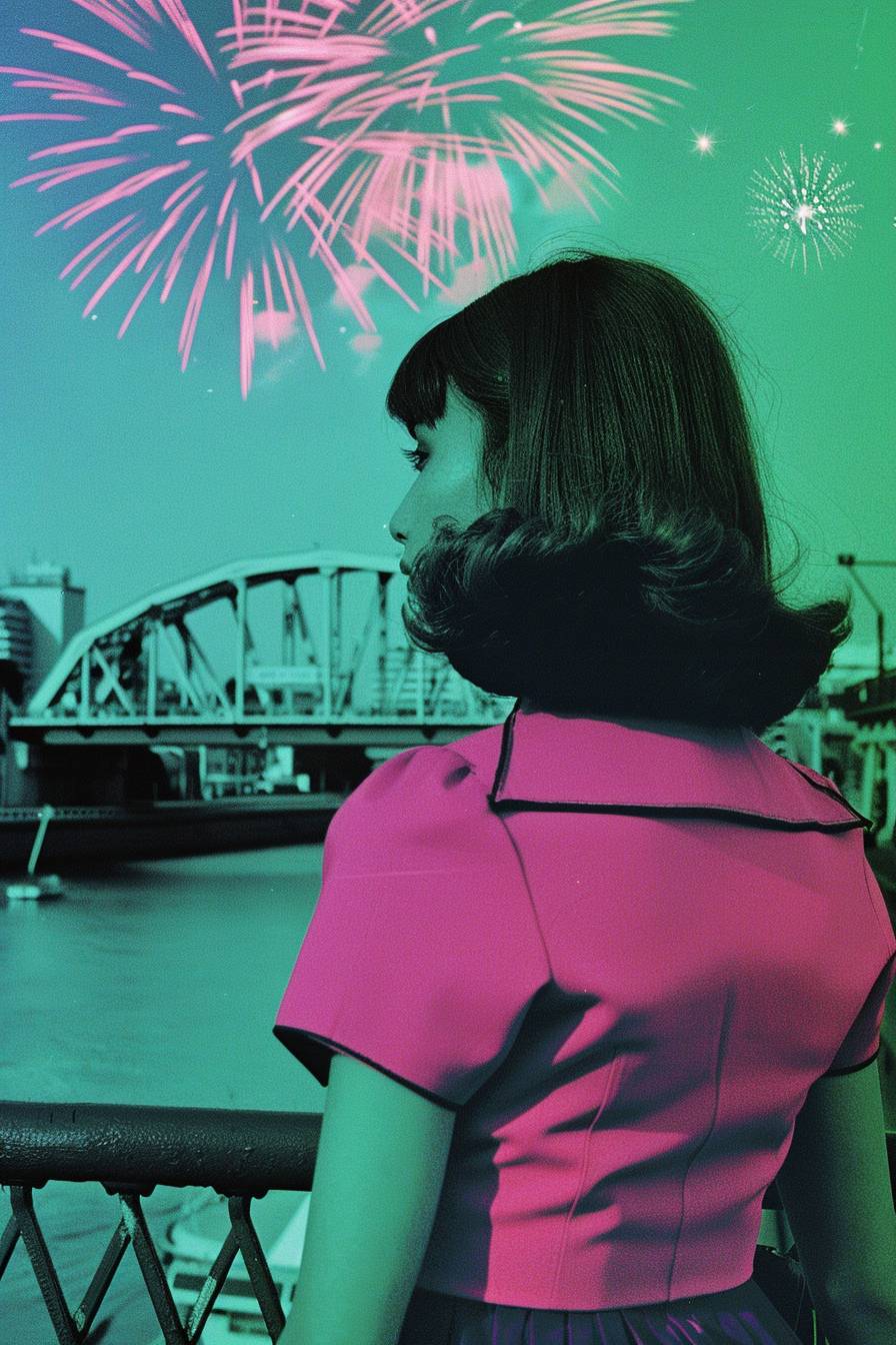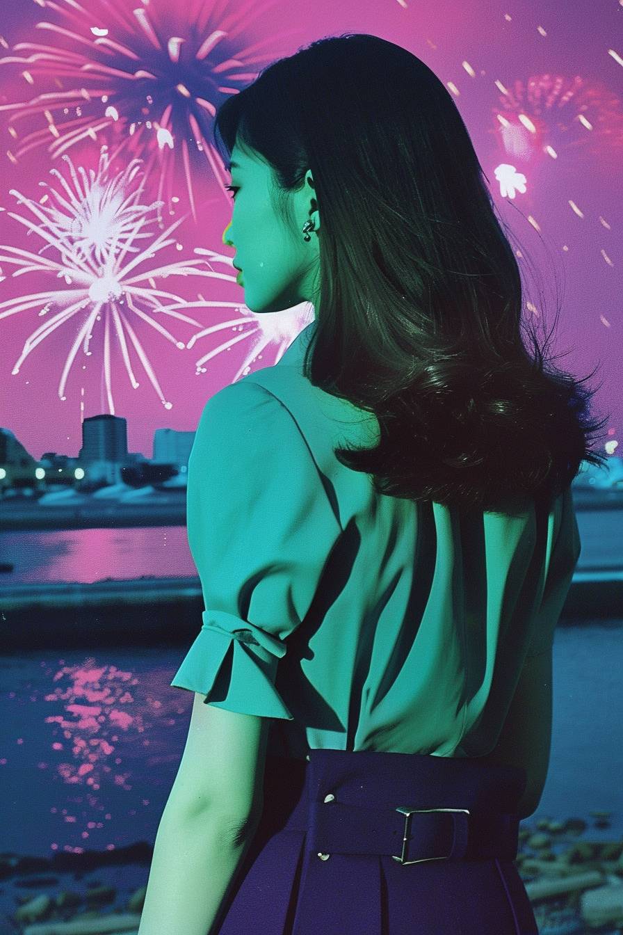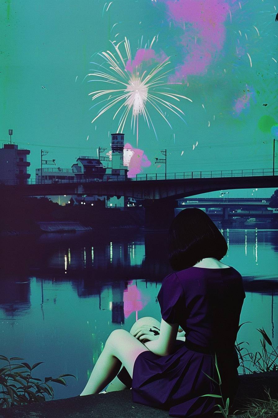 Akane is watching fireworks by the riverside. --ar 2:3 --sref 30 --v 6.0