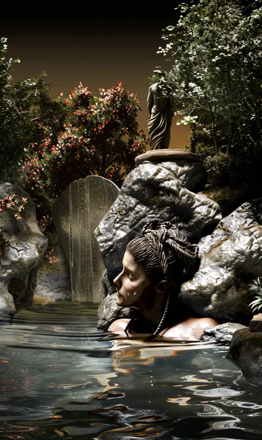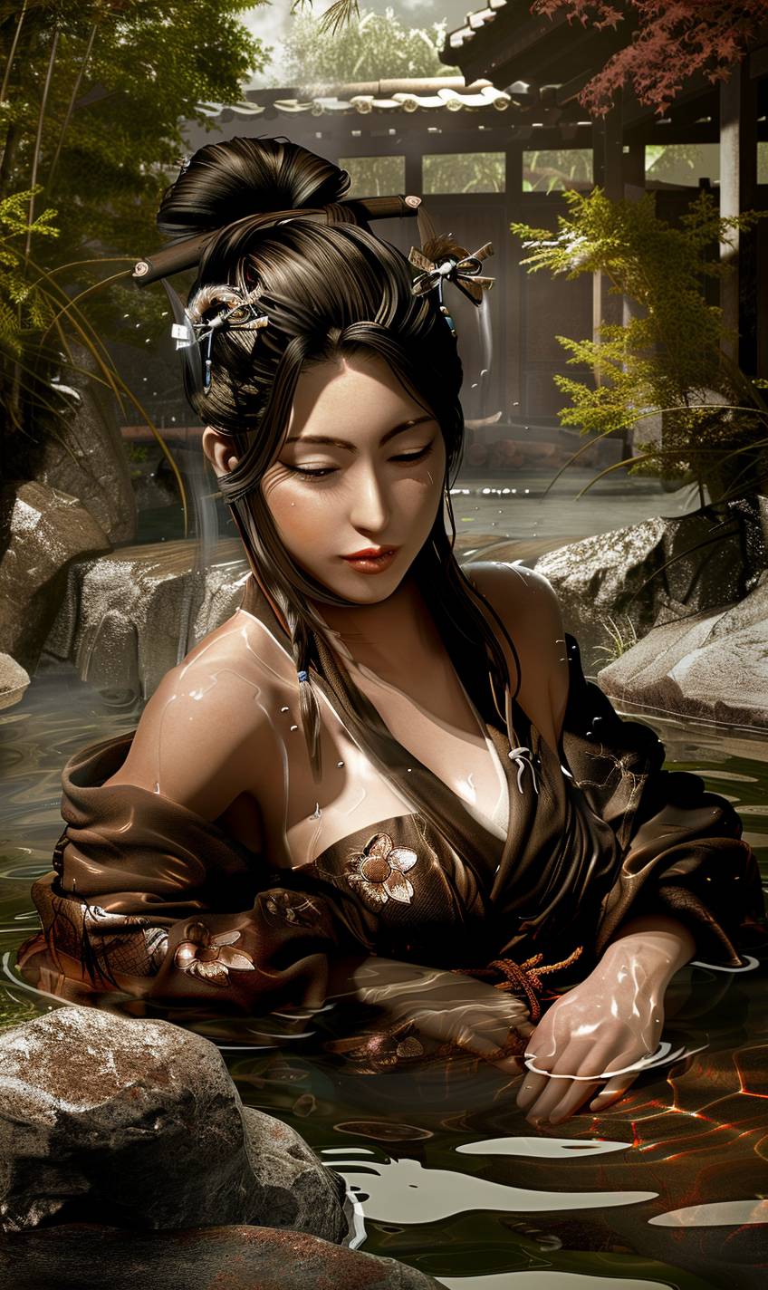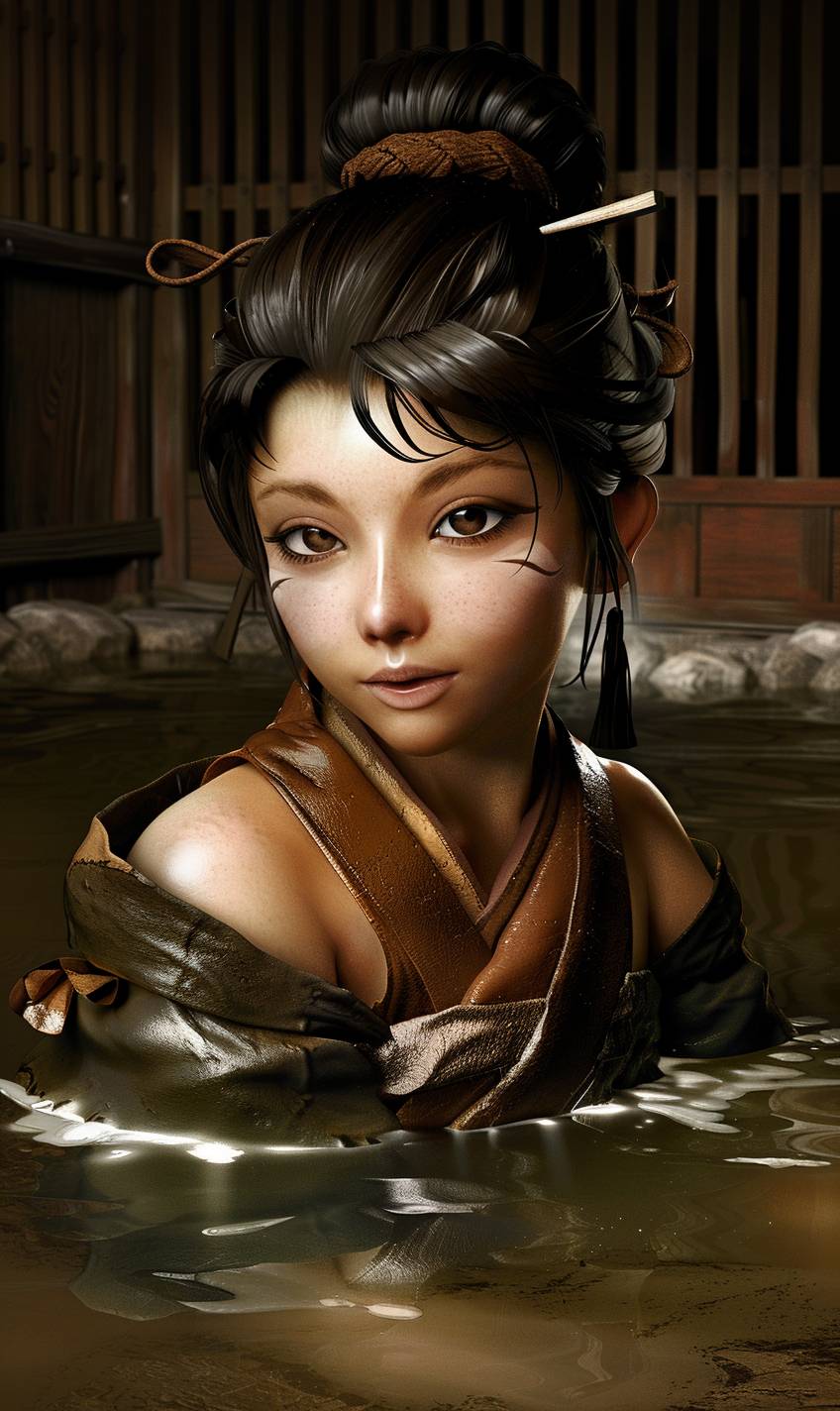 Nao is swimming in a natural hot spring. --ar 3:5 --sref 60 --v 6.0