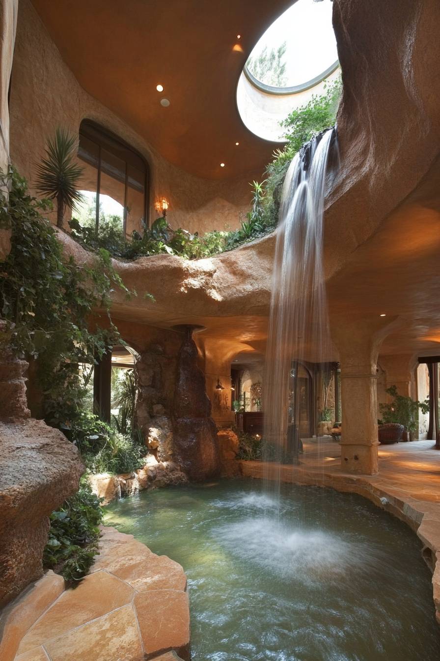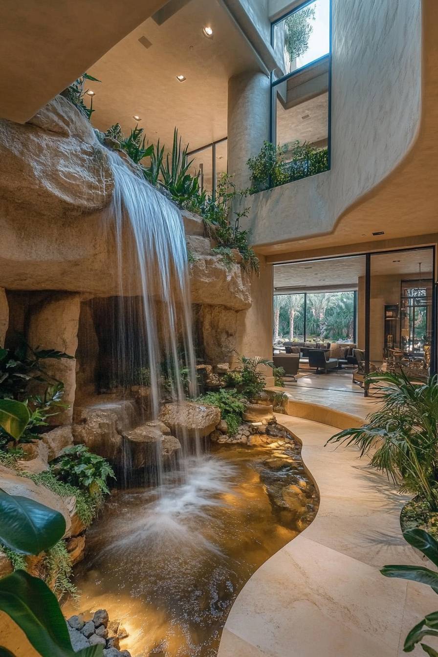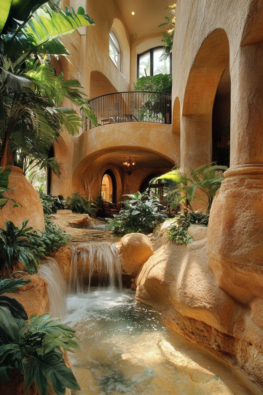 luxury desert mansion indoor oasis waterfall and garden --ar 2:3 --v 6.1