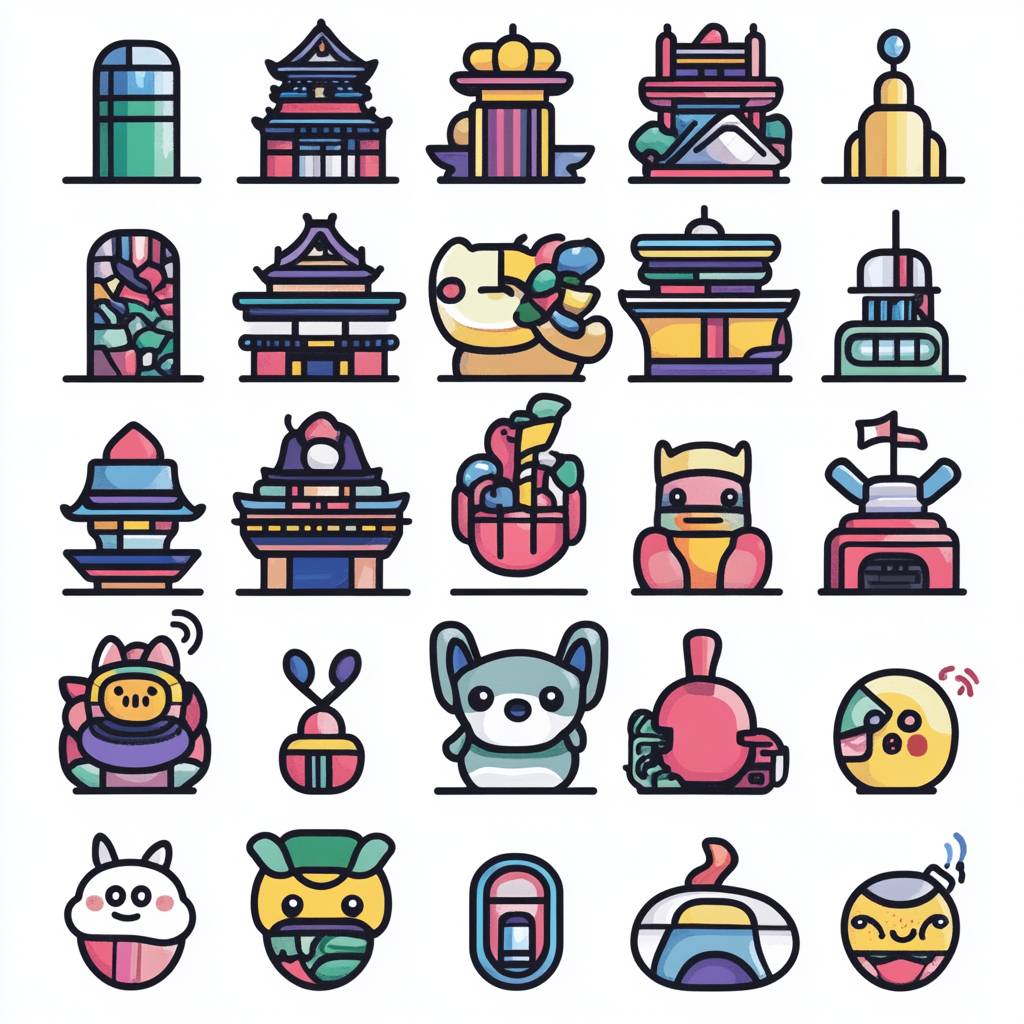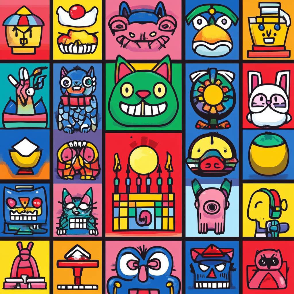 Keiichi Tanaami vector icons set illustrated by Keiichi Tanaami --v 6.1