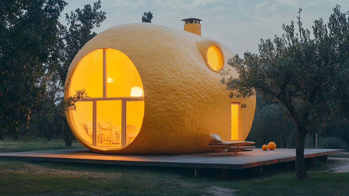 一座用巨大的柠檬建造的房子,自然光照