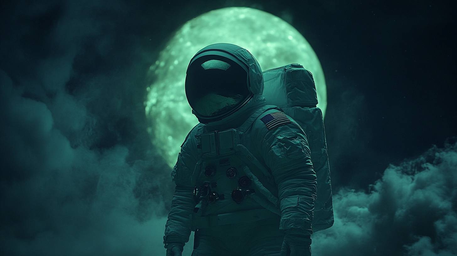 The Man's exploration on the Moon, spaceman in the galaxy --ar 16:9 --style raw --sref <https://s.mj.run/ubfI0PfAbOI> --stylize 500