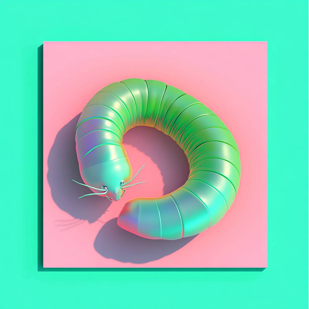 a earthworm, pink background --sref 3759704083 3873777224 --v 6.1