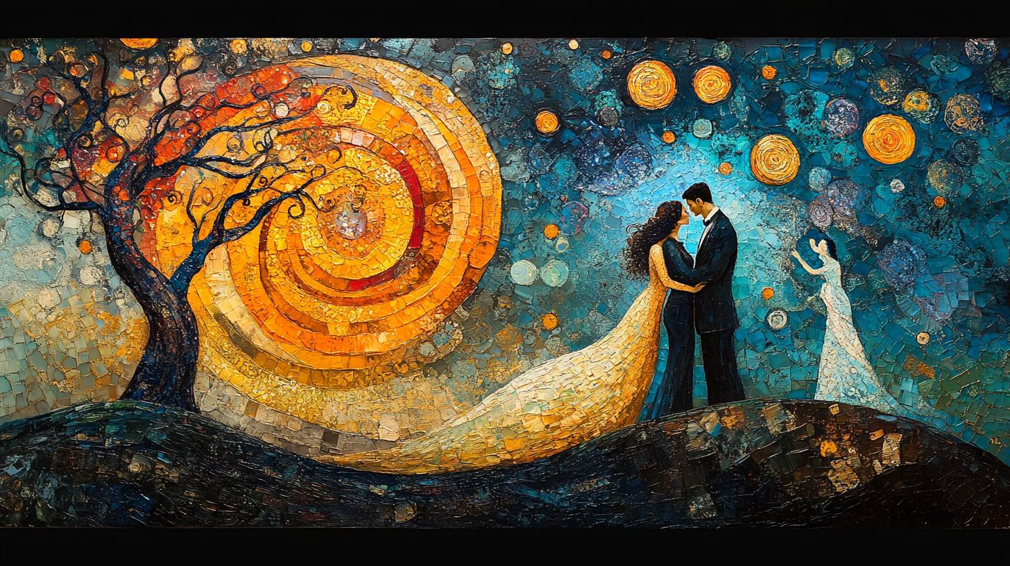 灵感来自克利姆特和夏卡尔的超现实恋爱描绘