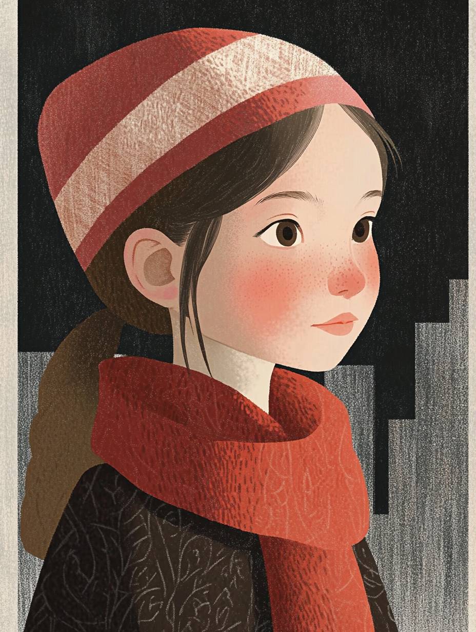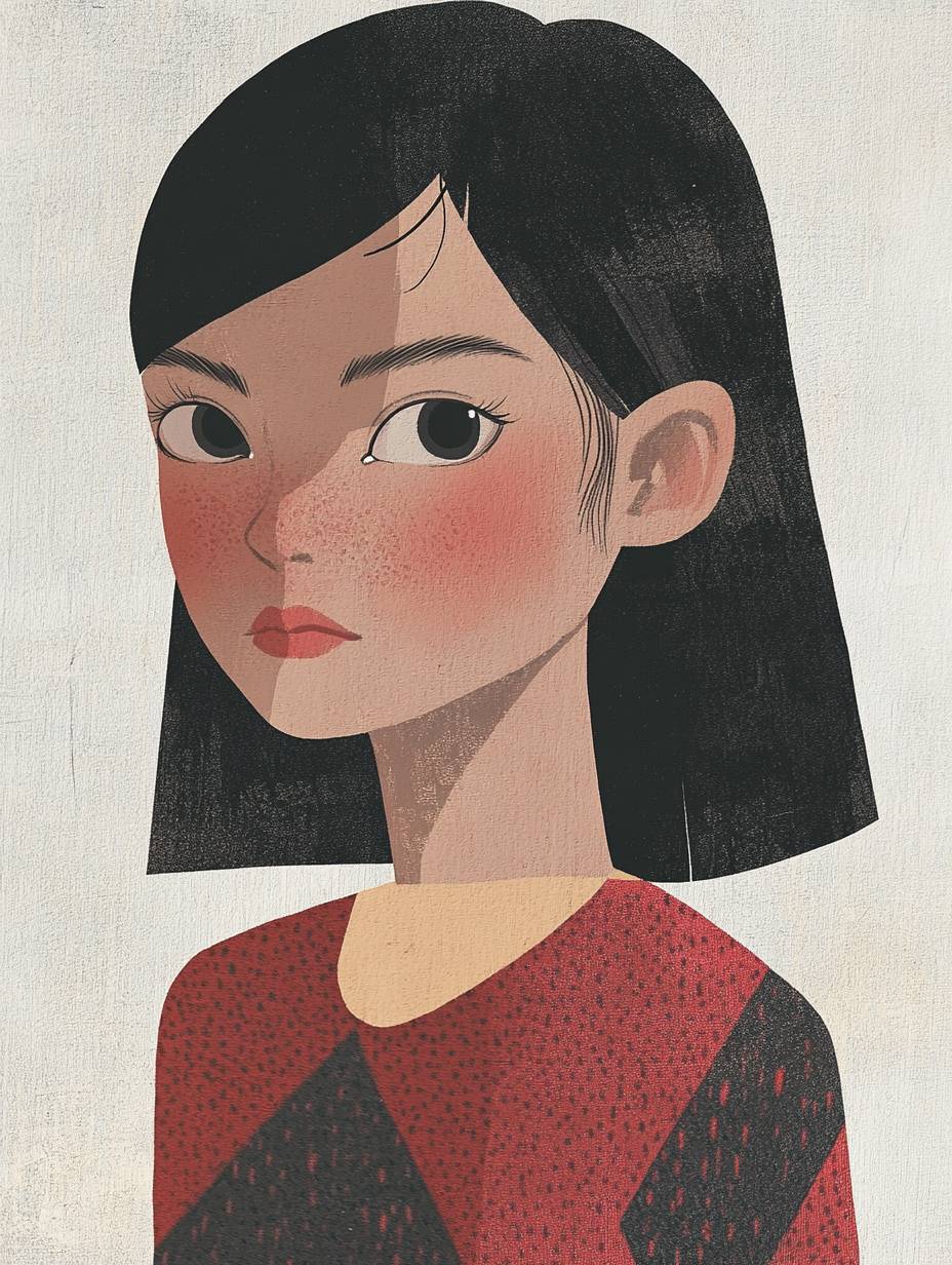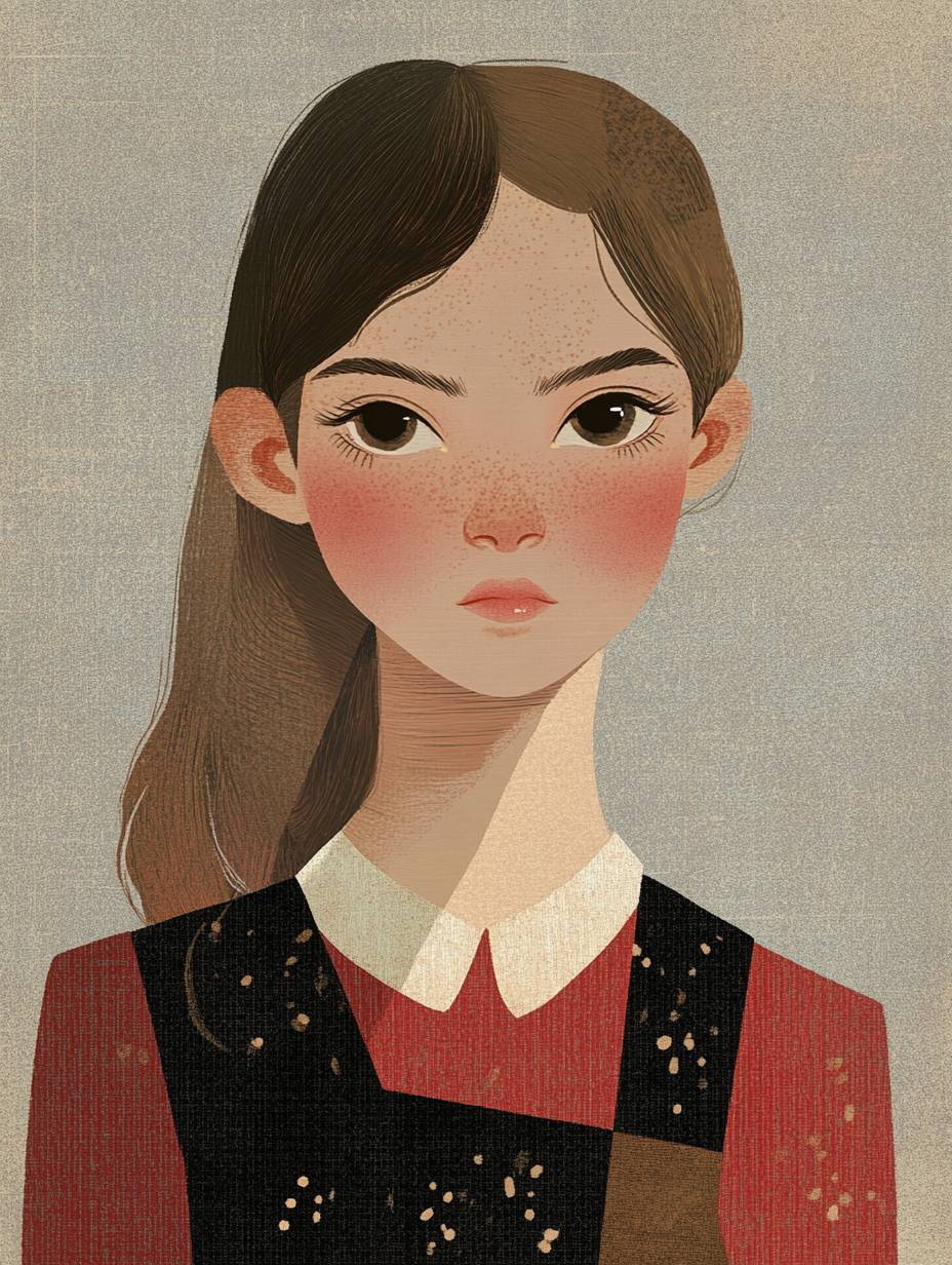 illustration, A portrait of a pretty young girl --ar 3:4 --sref 1937454777 --v 6.1