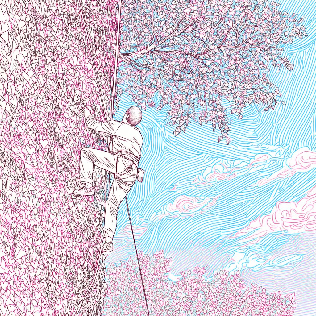 一个面孔模糊的女性,扎着高马尾,穿着彩色领带,背景为单色。