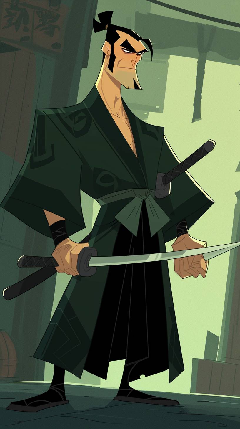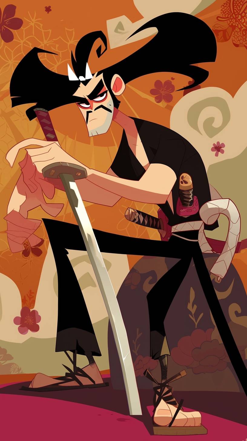 [Choose your character], in the style of Samurai Jack by genndy tartakovsky, 2D animation style --ar 9:16 --style raw --niji 6