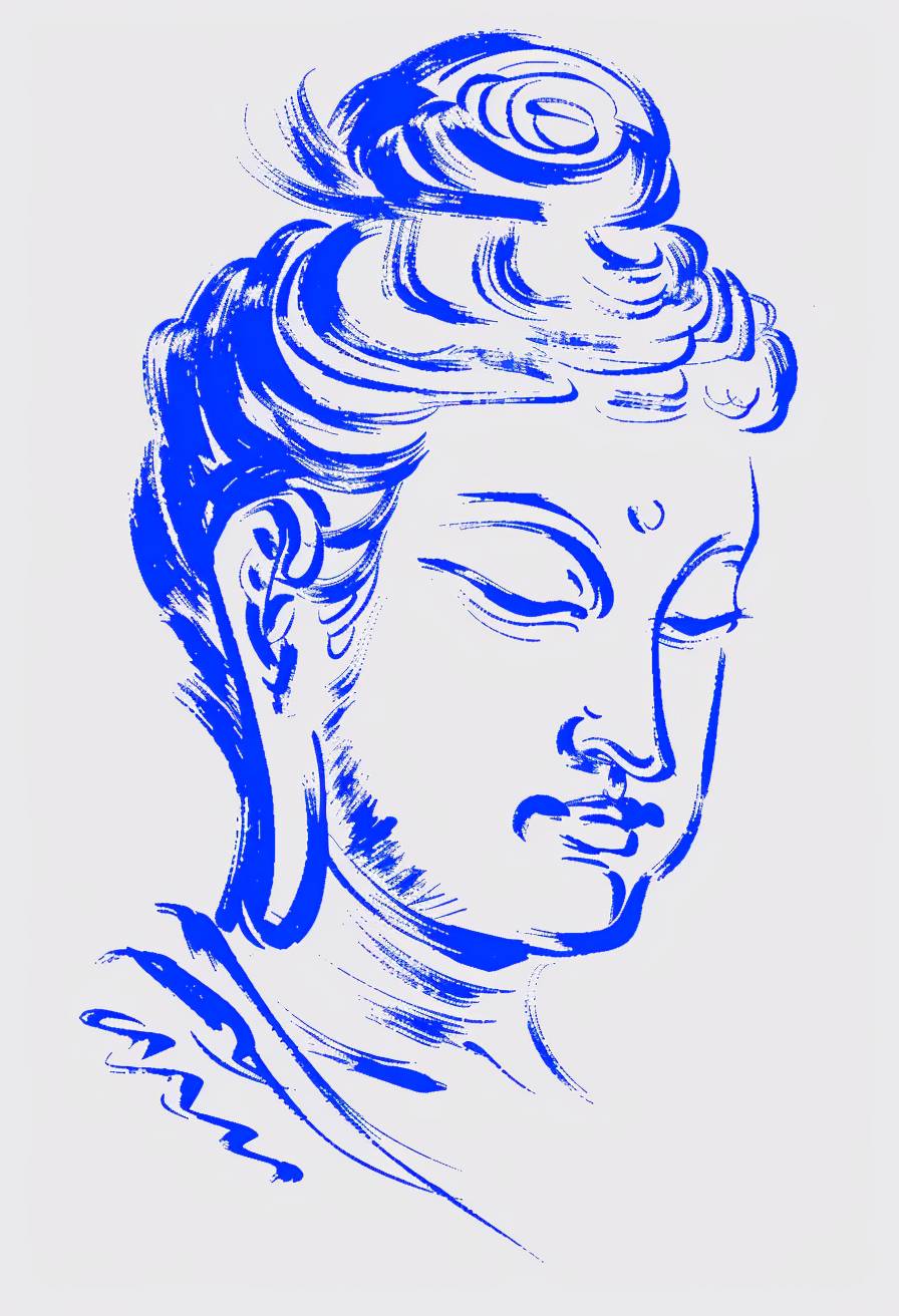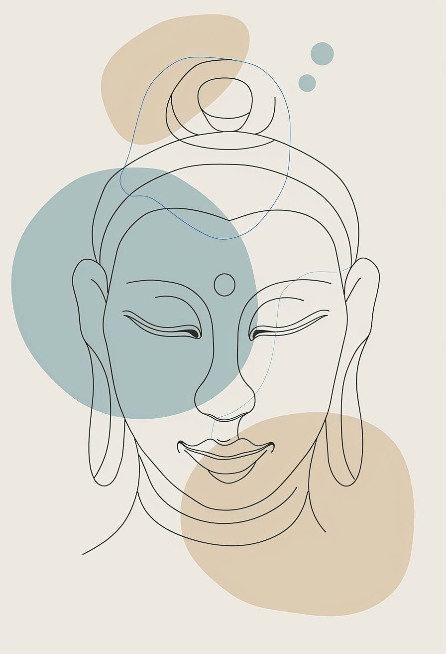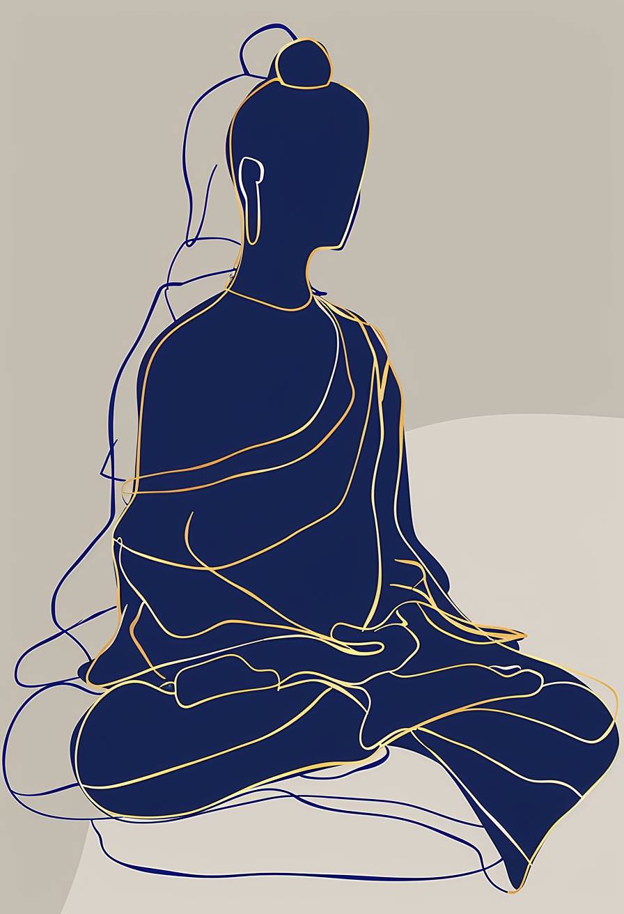藍白色的佛陀簡單線條畫,極簡主義風格的線條藝術,放在淺灰色背景上的剪貼畫