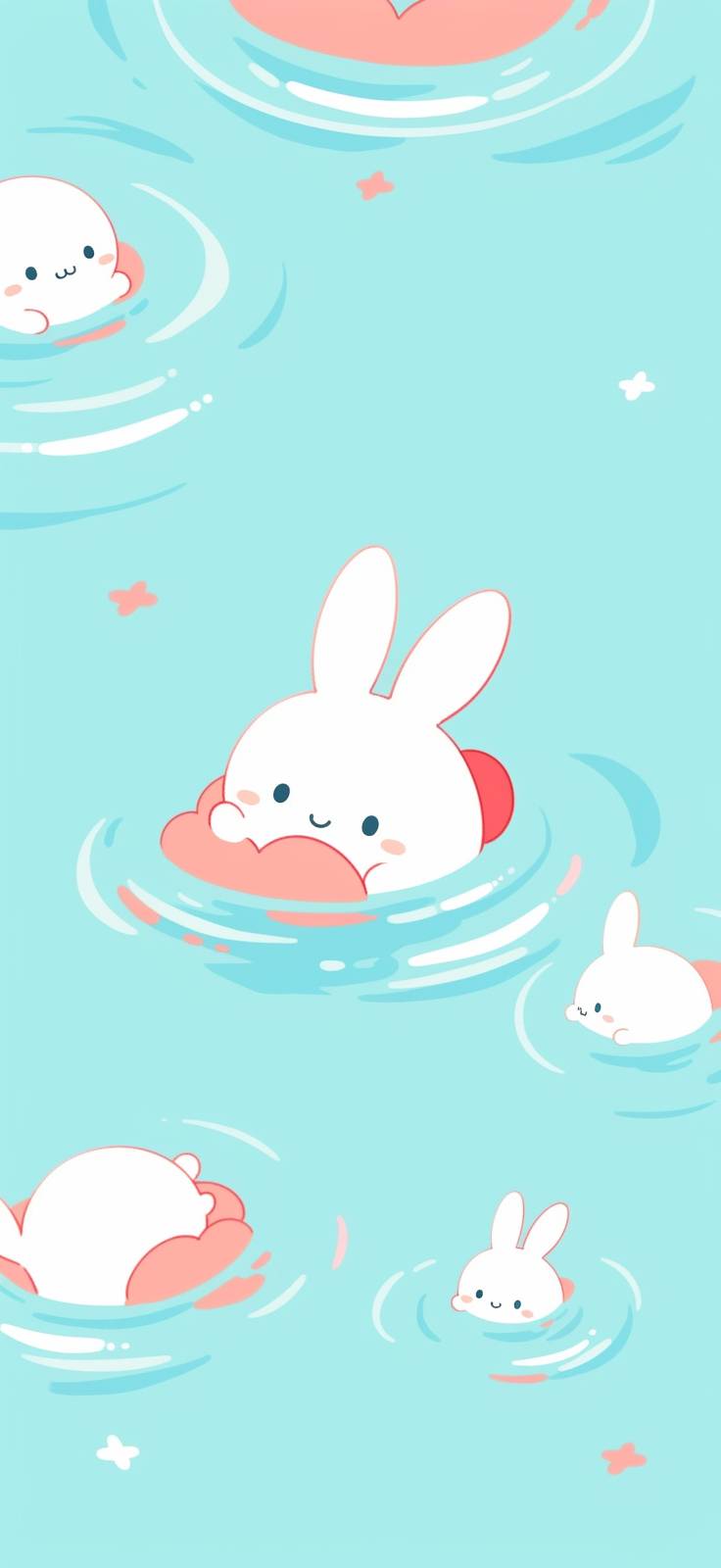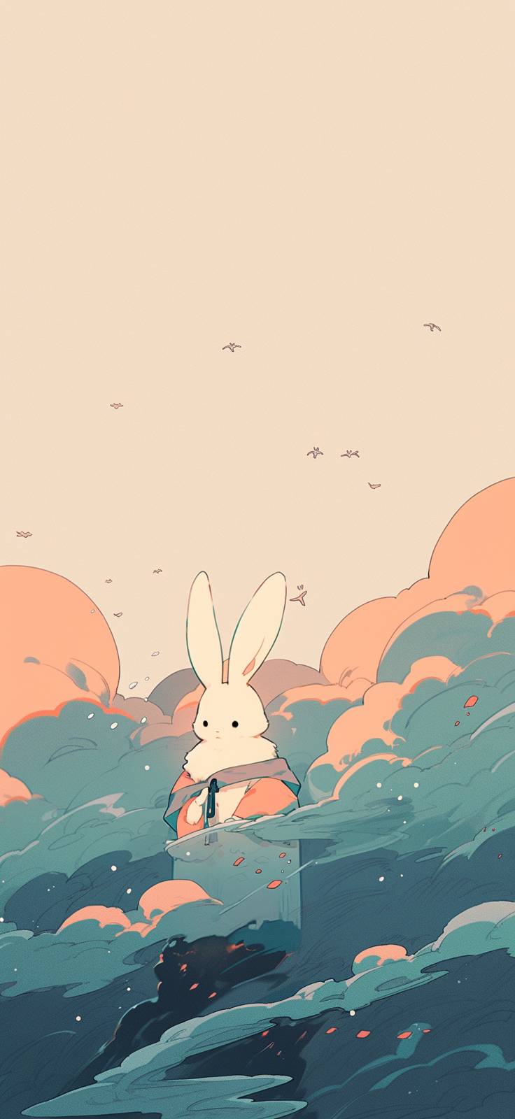 cute wallpaper with a bunny in the water, in the style of bold saturation innovator, minimalistic drawings, western zhou dynasty, webcam photography, minimalist pen drawings, strong facial expression, rough-edged 2d animation --ar 59:128 --niji 5