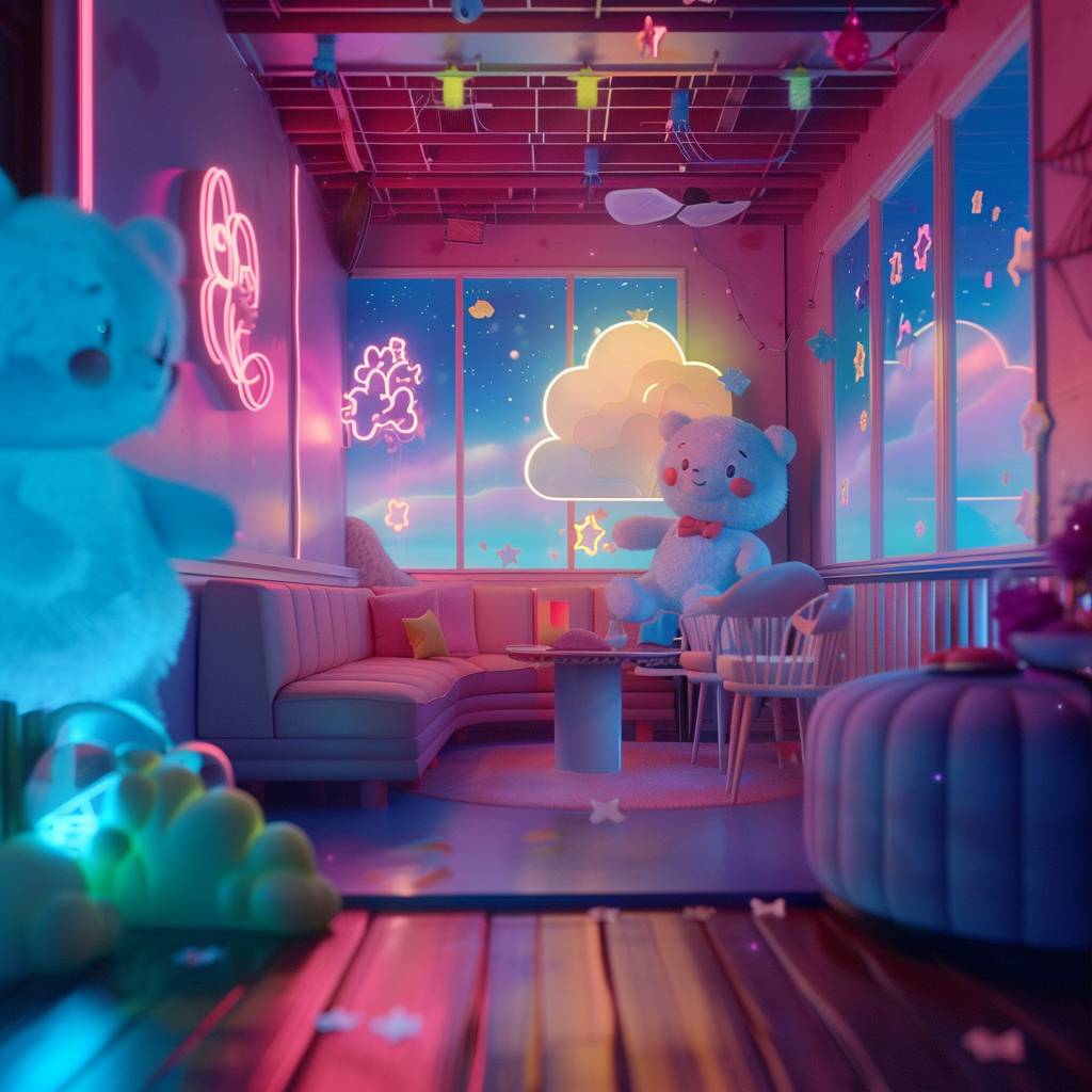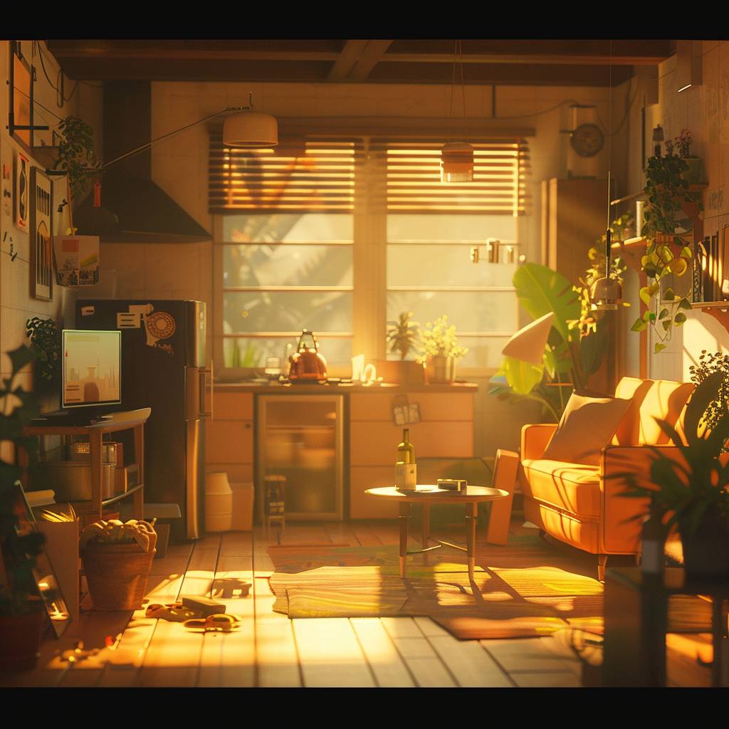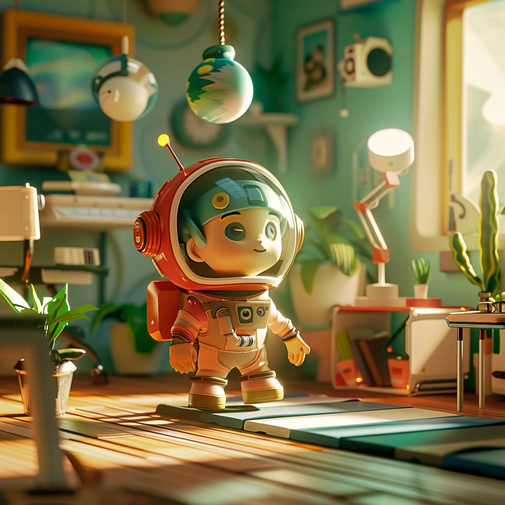 一個明亮色彩、柔和陰影和溫暖氛圍的卡通風格3D渲染圖。