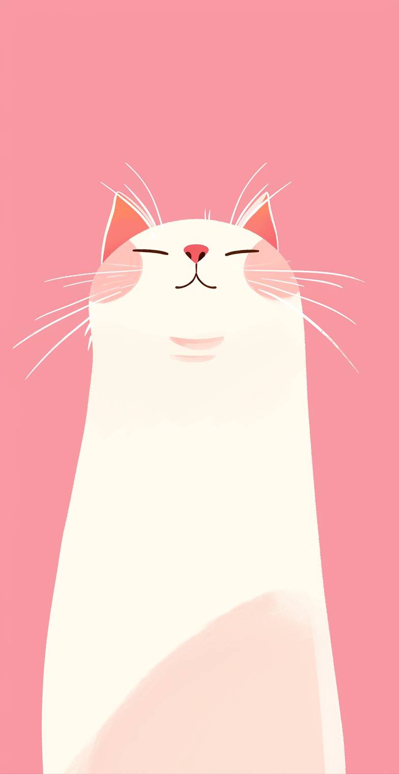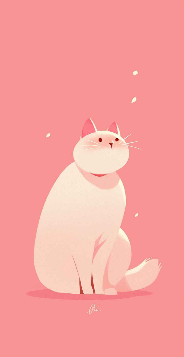 一隻粉紅色的貓,極簡、簡潔的設計,平面藝術風格,抽象而有趣,簡單的筆畫,乾淨和極簡的藝術風格,平坦和乾淨的背景,粉紅色純色背景