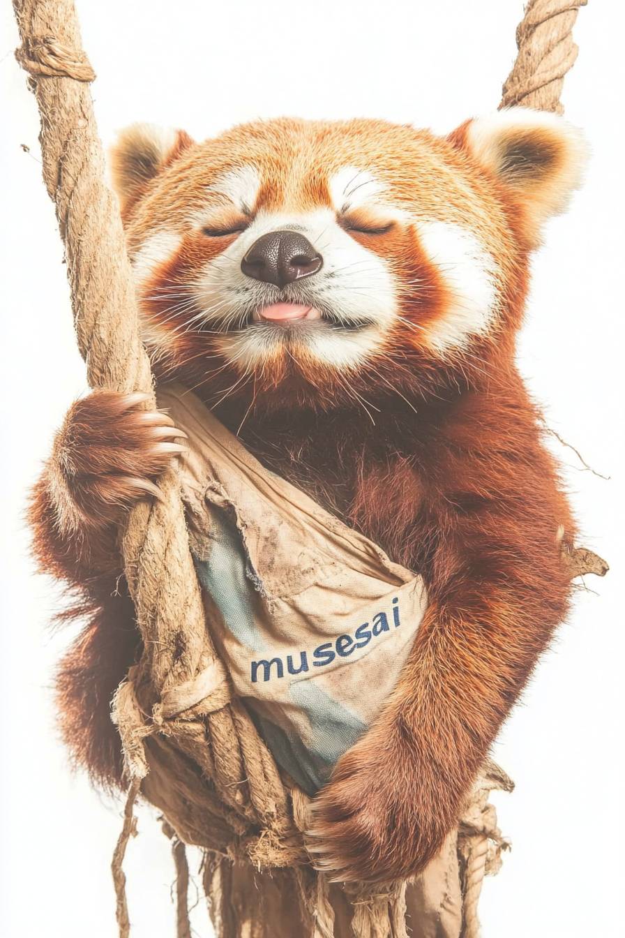 cutest red panda dreaming, the text big letters "musesai" isolated, white background --ar 2:3 --personalize g18k5iw --stylize 1000 --v 6.1