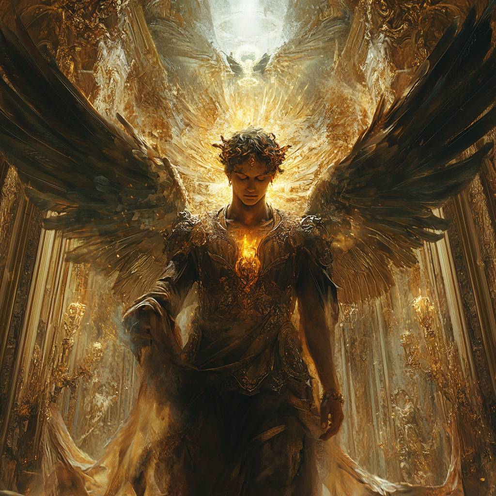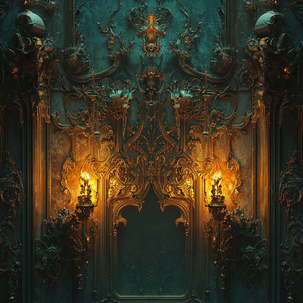 以巴洛克風格的以太光輝描繪主題,具有華麗的細節、戲劇性的照明和超凡的能量。使用 [COLOR1] 和 [COLOR2] 的豐富色彩調色板,以喚起宏偉和神秘感。