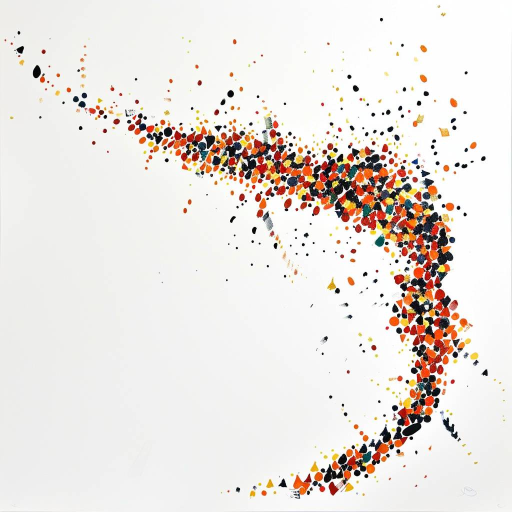 small [COLOR] irregular dots forming the shape of a [SUBJECT], artistic, minimalist, white background --s 30 --c 5 --v 6.0