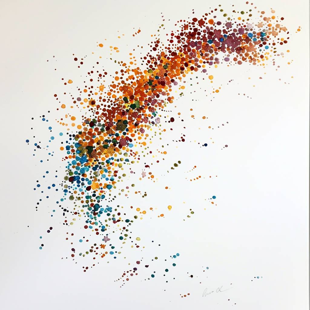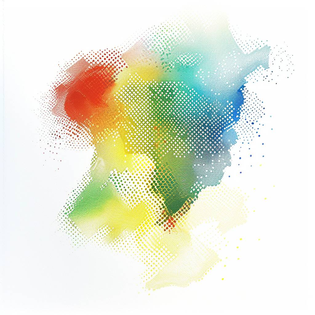小色彩不規則點形成一個主題,藝術性,極簡風格,白色背景。