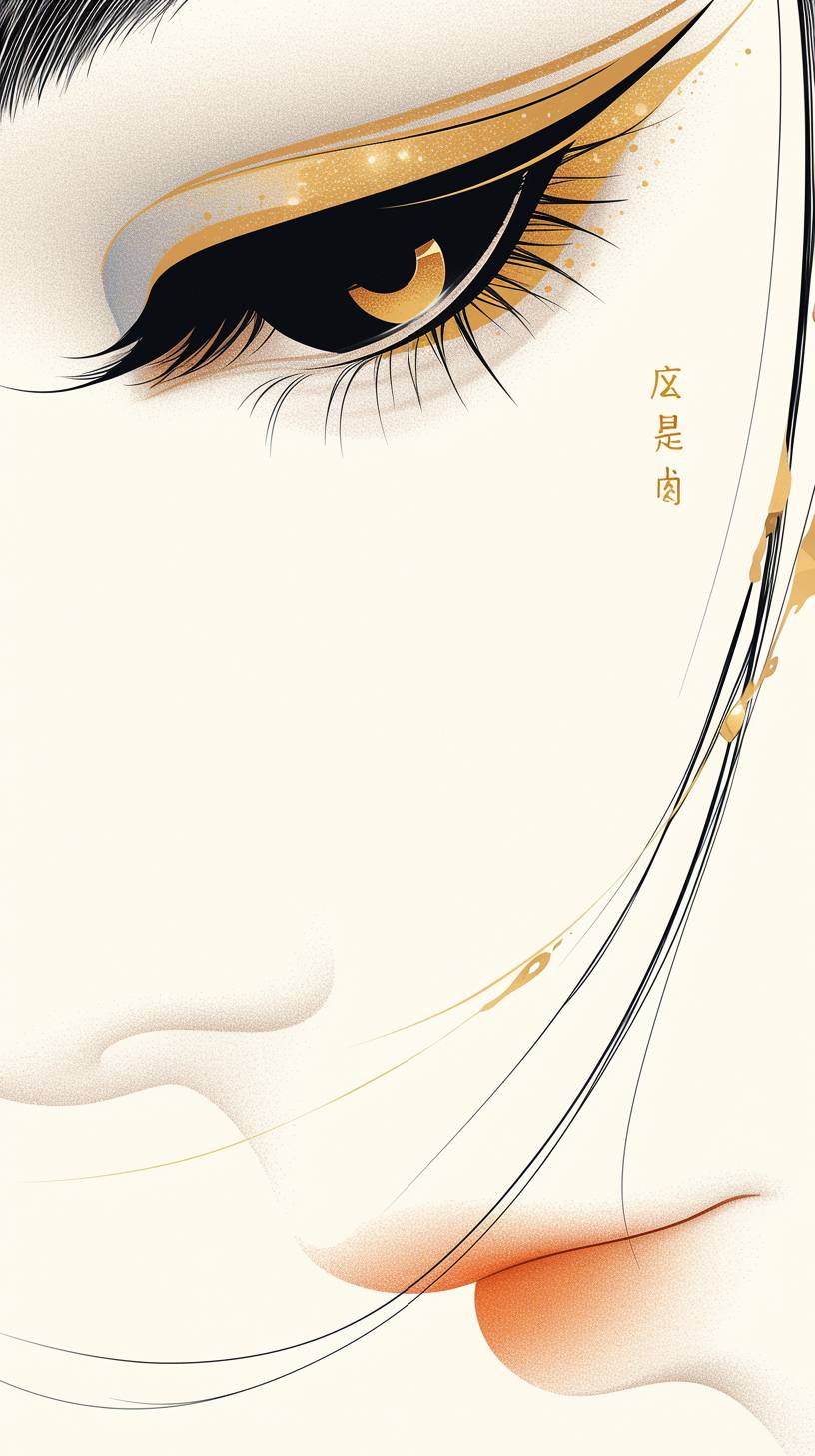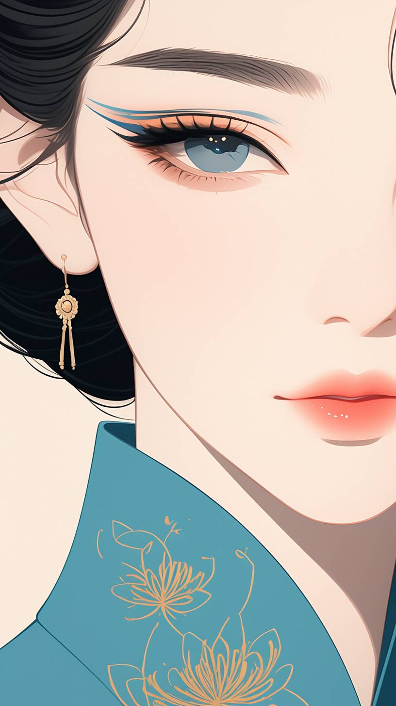 Portrait, Guo Moruo, minimalist composition, front, face close-up, romantic, chic, Celiate, Han costume, classical Chinese illustration, vector image, bright eyes, gold and blue eyeshadow, delicate eye details, exuding ancient beauty elegance, delicate features, minimal ink, ultra-fine details, soft lighting, beautiful shadows, 8K, Ultra HD --ar 9:16 --stylize 400 --niji 6