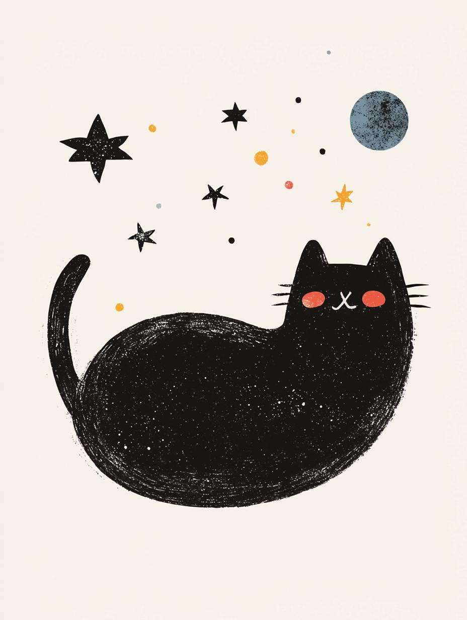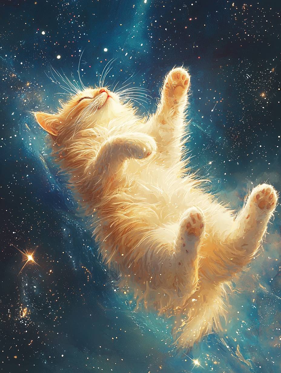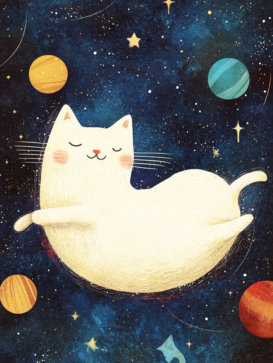 cat floating in space, childrens Illustration --ar 3:4 --quality 2 --personalize 1uc7kco --v 6.1