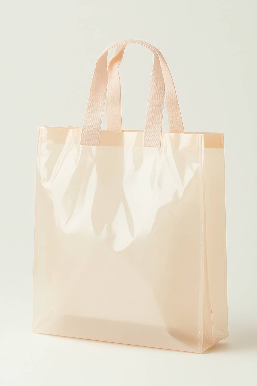產品攝影,以無印良品風格,環保購物袋,簡約設計,展示於中性色背景下。